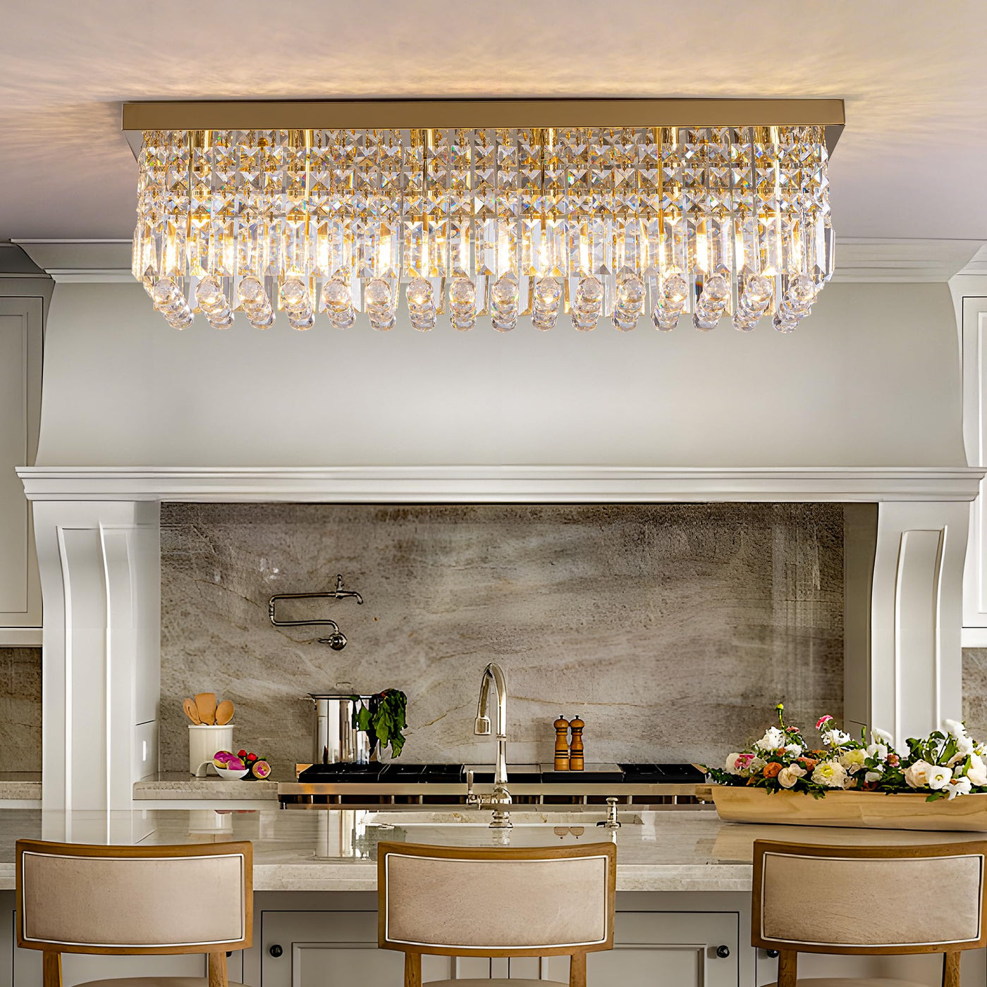 Tinkoso 59-Inch Modern Crystal Chandelier,13-Light K9 Crystal Rectangle Chandelier For Dining Room,Kitchen Island Adjustable Han