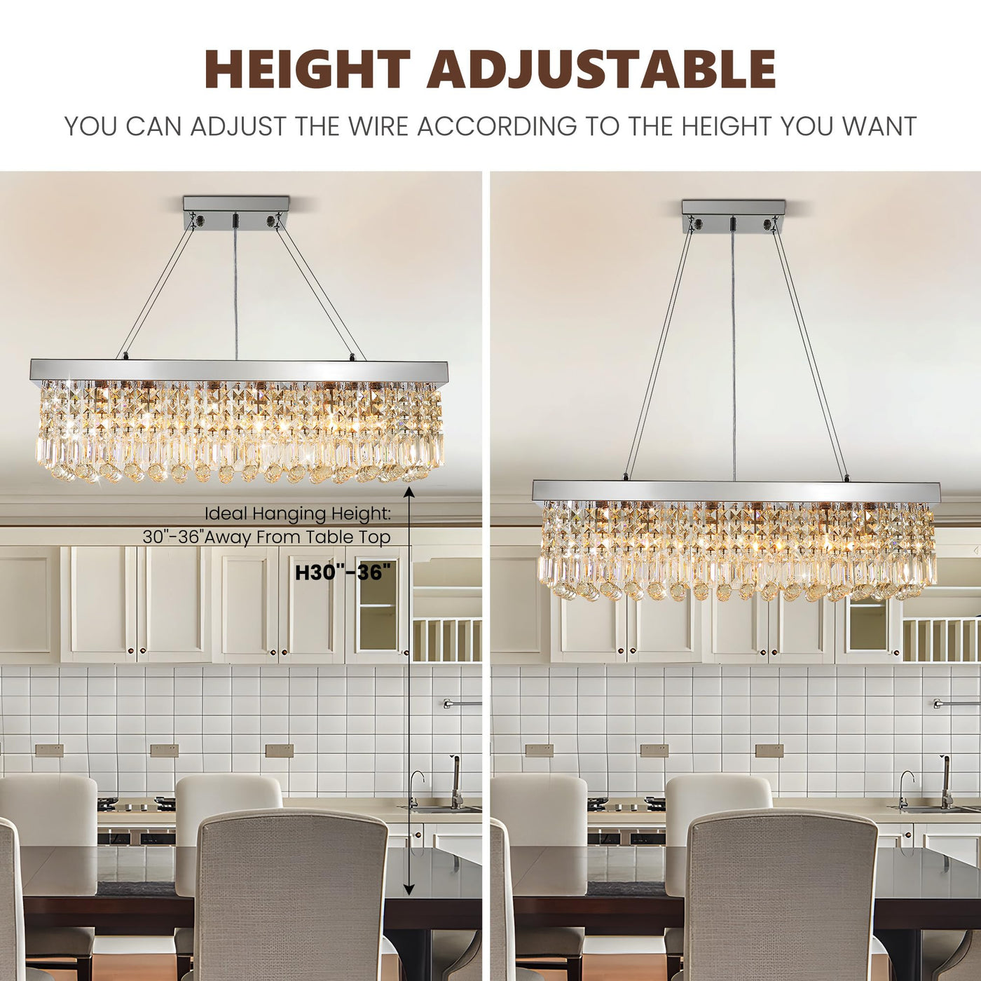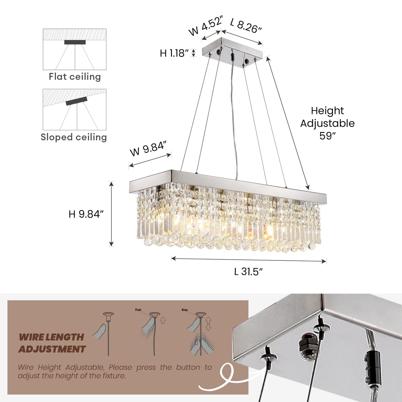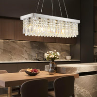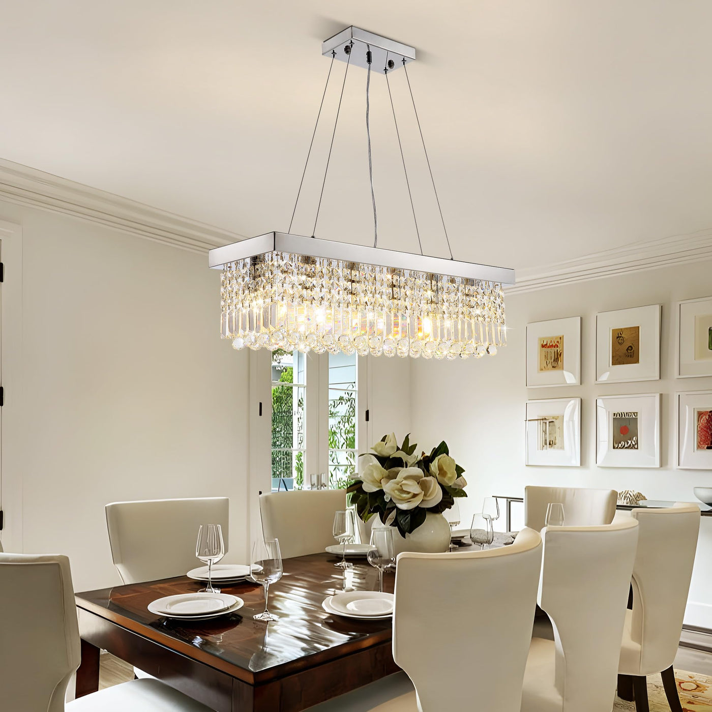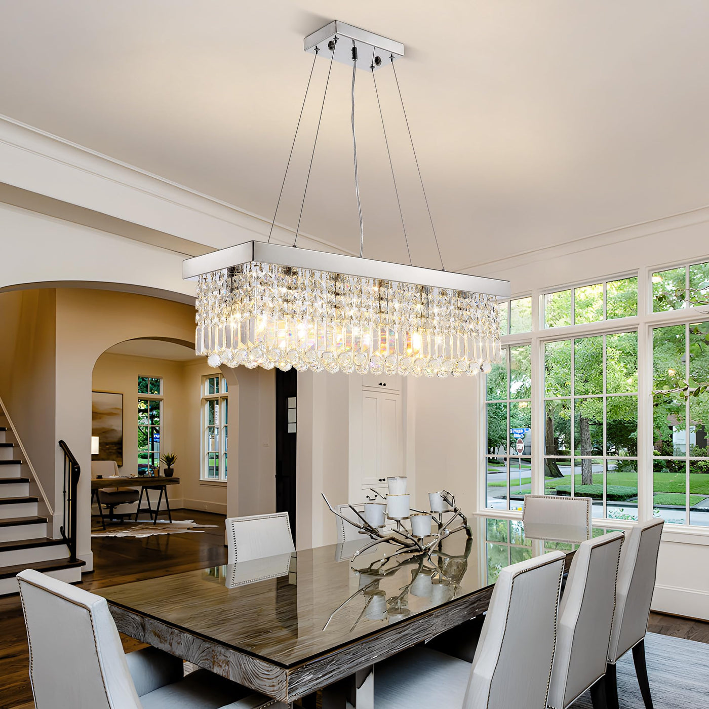 Tinkoso Crystal Chandelier For Dining Room,6-Light Modern Chandeliers,K9 Crystal Rectangle Chandelier,Farmhouse Pendant Light Fi