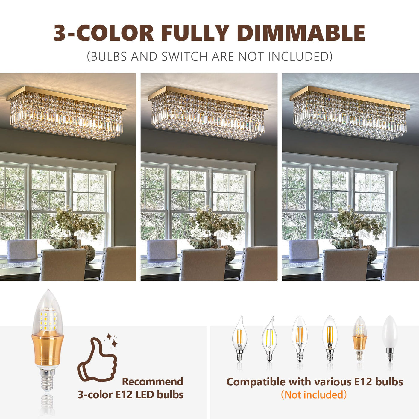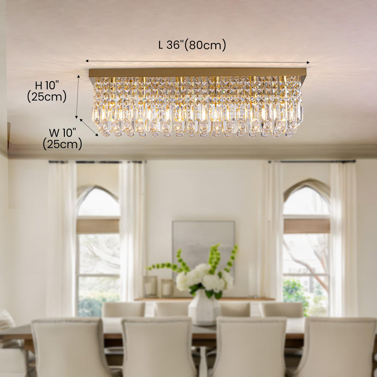 Tinkoso Gold Chandeliers,10-Lights Modern Crystal Chandelier, Rectangular Flush Mount Chandelier,Pendant Light Fixture For Dinin