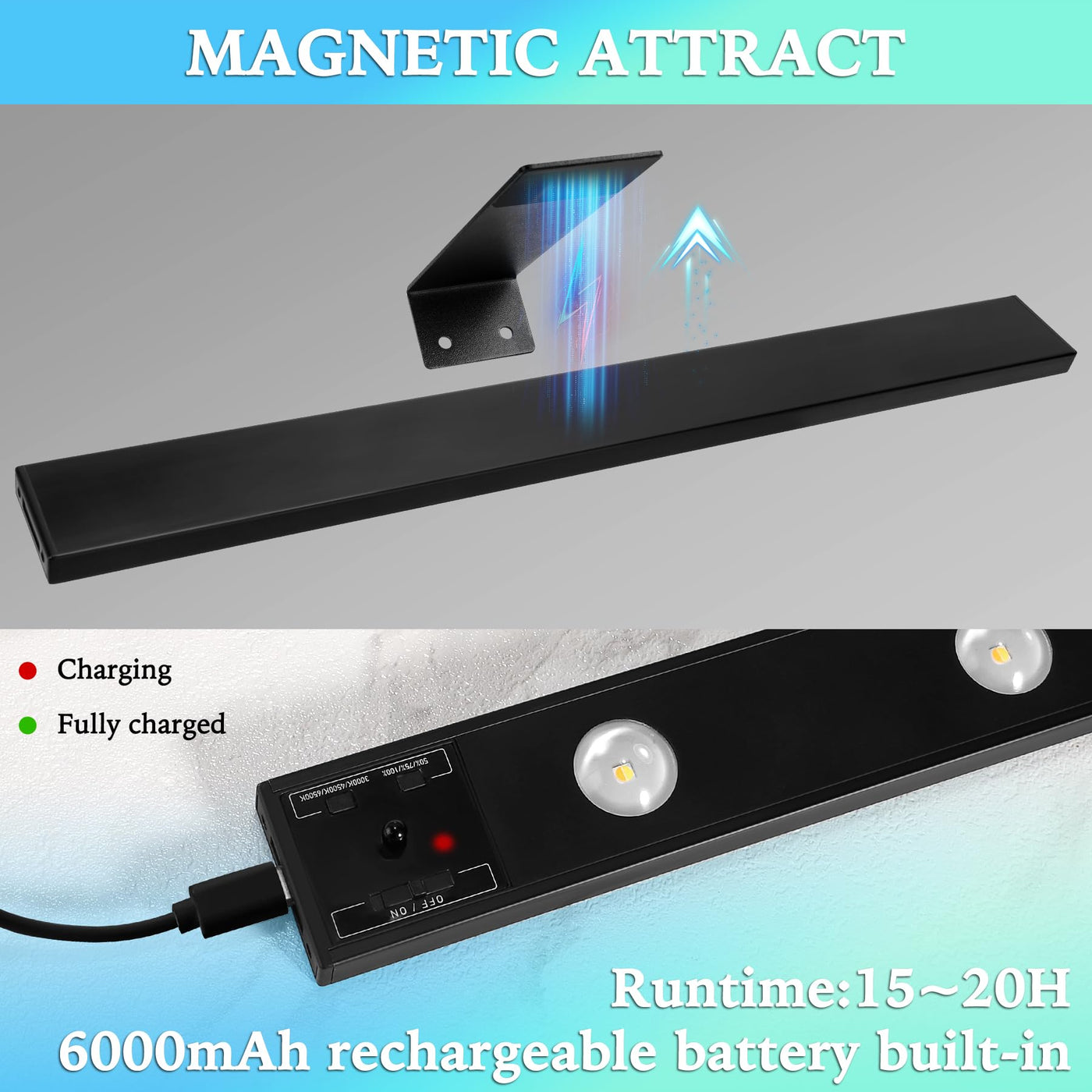 Tintindoc 22''Wireless Led Picture Light Battery Rechargeable 6000Mah Full Metal,Painting Light For Wall With Remote Control,3 Lighting Dimmable Timer Off, Art Light For Display Wall Picture, 400Lm