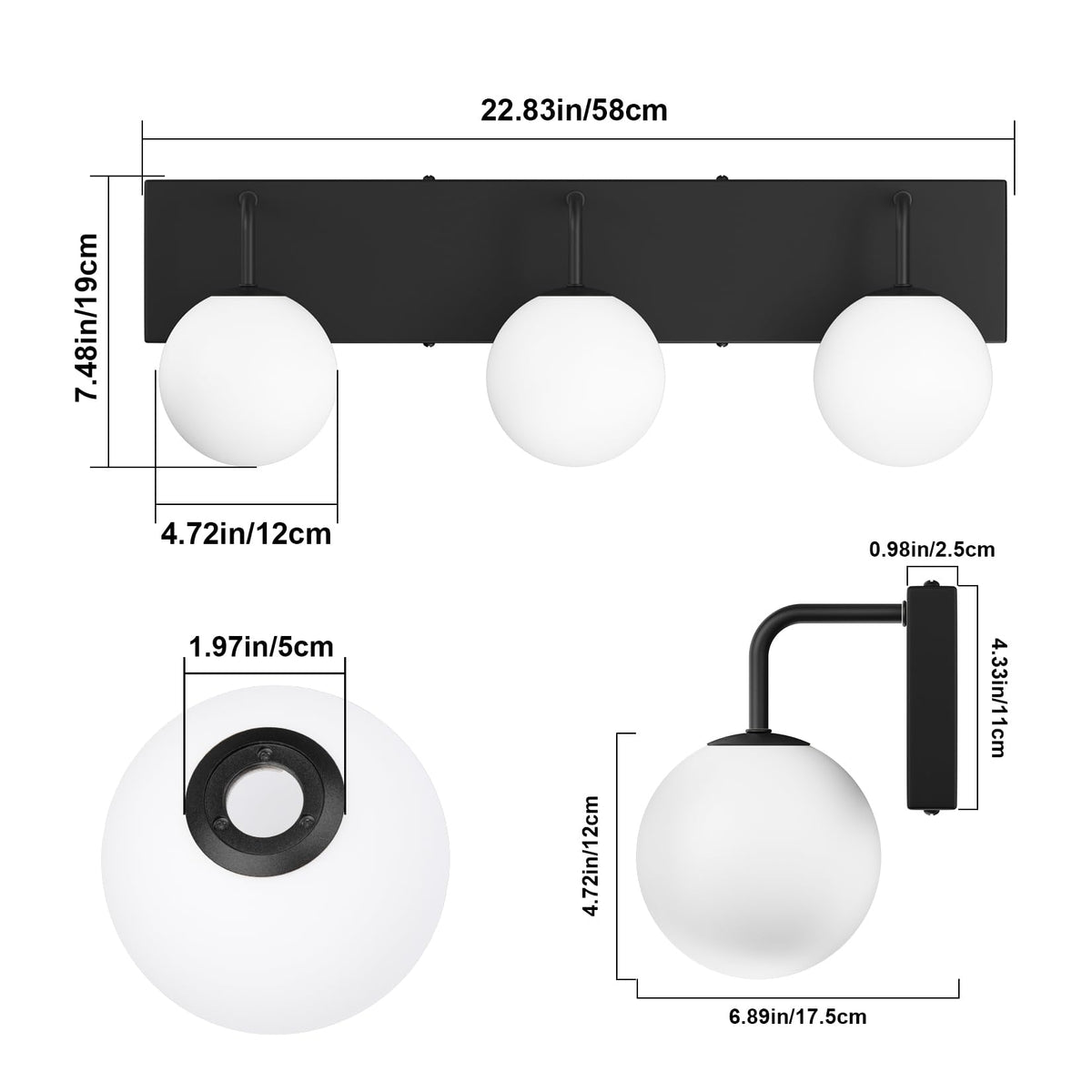 Product Information: Brand:Tipace Item Weight:4.4 pounds Product Dimensions:22.83 x 7.48 x 6.89 inches Style:Industrial,Vintage,Farmhouse,Modern Size:3-Light Color:Black Material:Milk White Glass,Metal Voltage:120 Volts Special Features:Dimmable Shade Material:Milk White Glass Light Direction:Up/Down Light Specific Uses:?Bedroom- Bathroom- Living Room ?Dining Room -Kitchen Island ?Porch Entryway Foyer Wattage:180 watts Power Source:AC Power Type of Bulb:Compact Fluorescent Light (CFL)/LED/or other Included Components:?Bulb Are Not Included