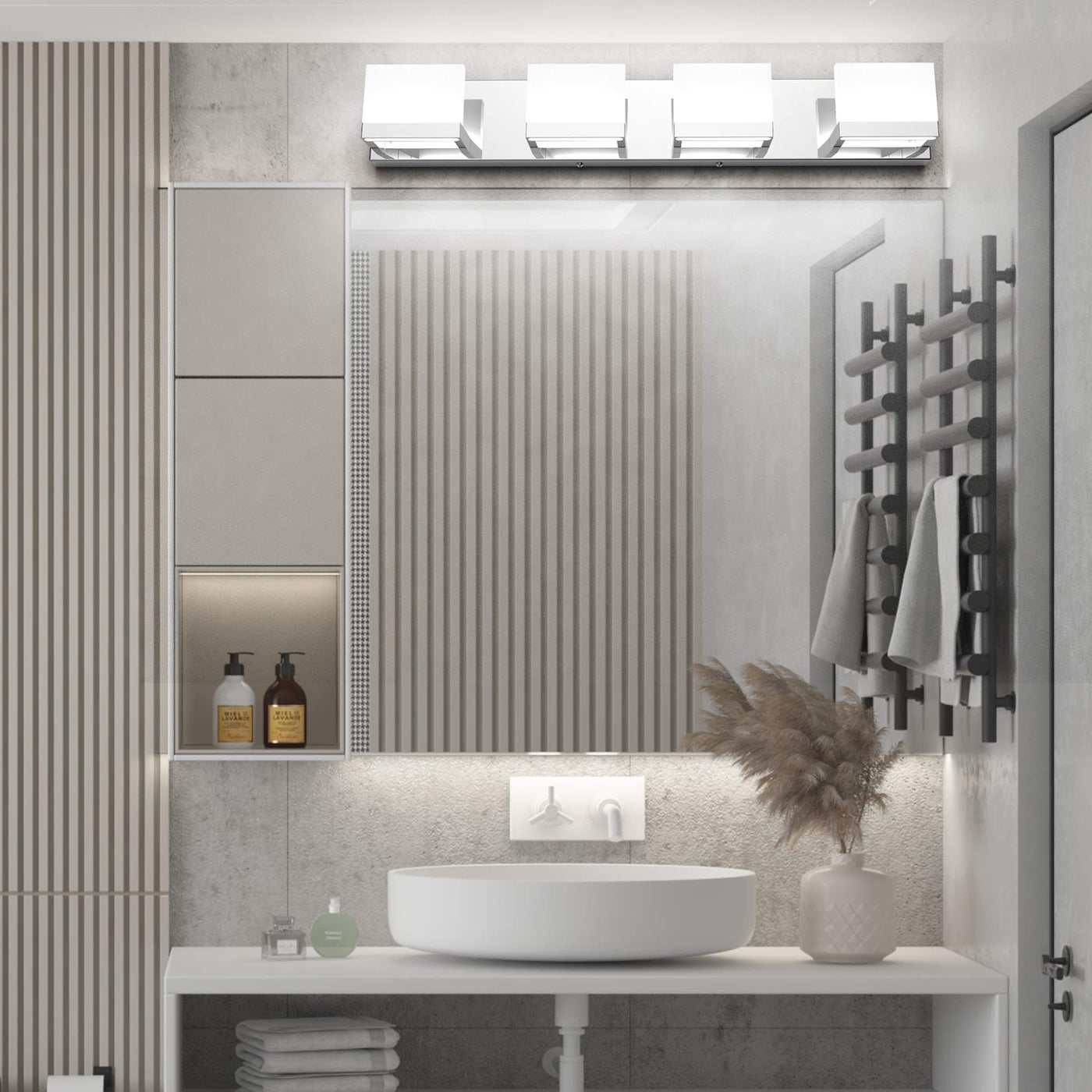 Tipace 4 Lights Led Modern Vanity Light Chrome Bathroom Lighting Fixture Up And Down Bathroom Wall Light Over Mirror(White Light