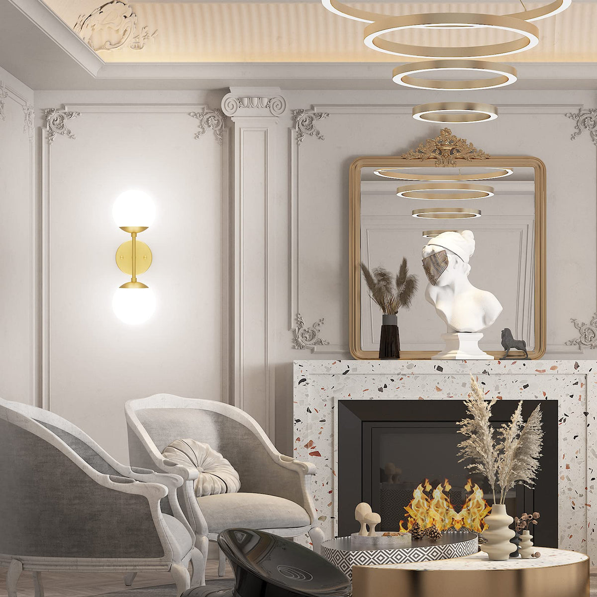 Tipace Gold Wall Sconce 2 Lights, Mid Century Modern Globe Wall Light, Golden Globe Wall Sconce For Restaurant Living Room Bedsi