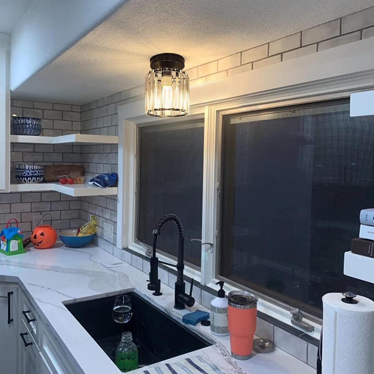 Q: What colors are available for these ceiling light fixtures?A: The TISLYCO Crystal Chandelier Mini Light Fixtures are available in a black finish, which complements various interior design styles.