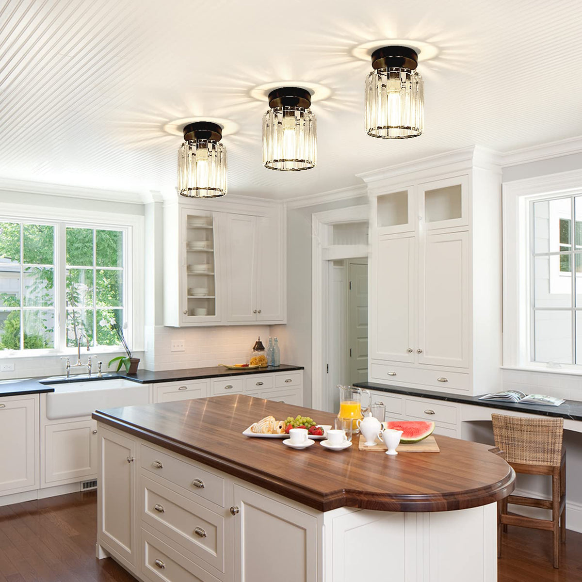 TISLYCO Set of 2 Mini Crystal Ceiling Light Fixtures, Modern Flush Mount, 4.6inx4.7in, Black