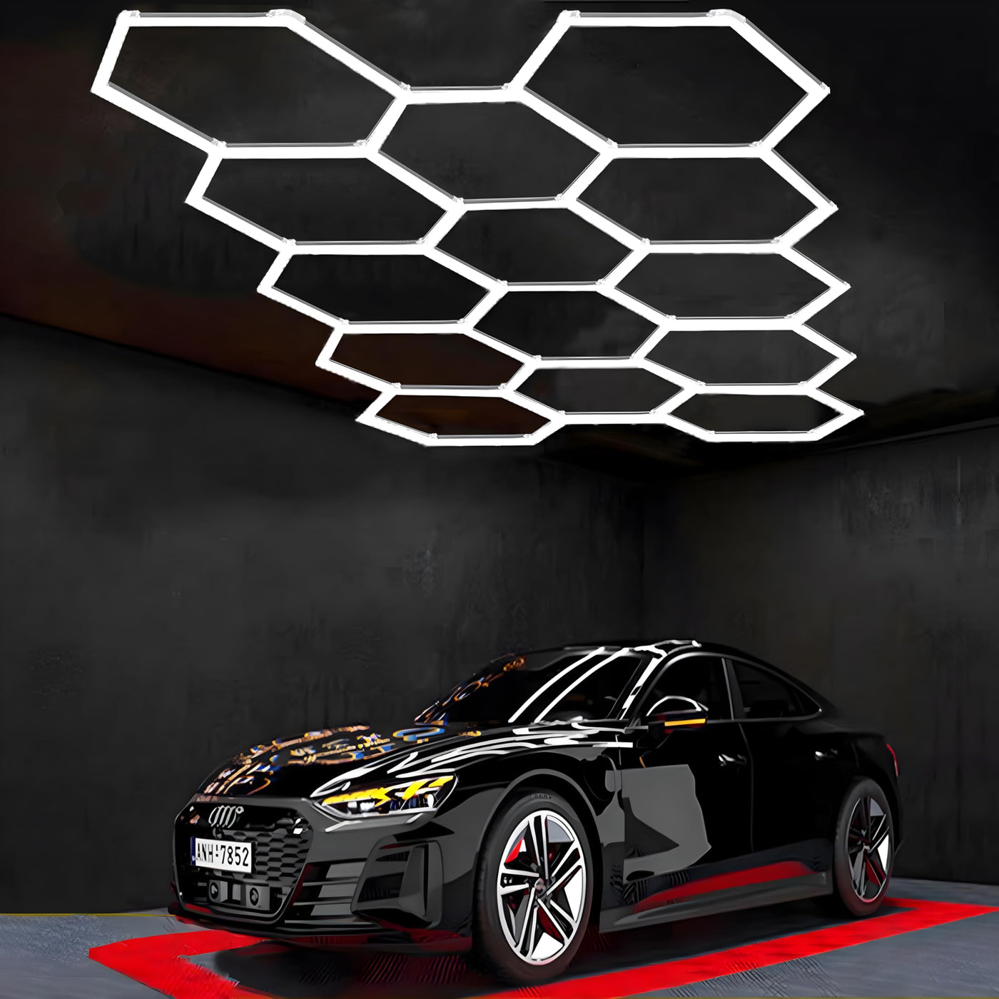Tiyahomey Aluminum Frame Led Hexagon Garage Light,14 Hexagon Honeycomb Lights 600W 60800 Lumens Hexagon Garage Light With T5 Tub
