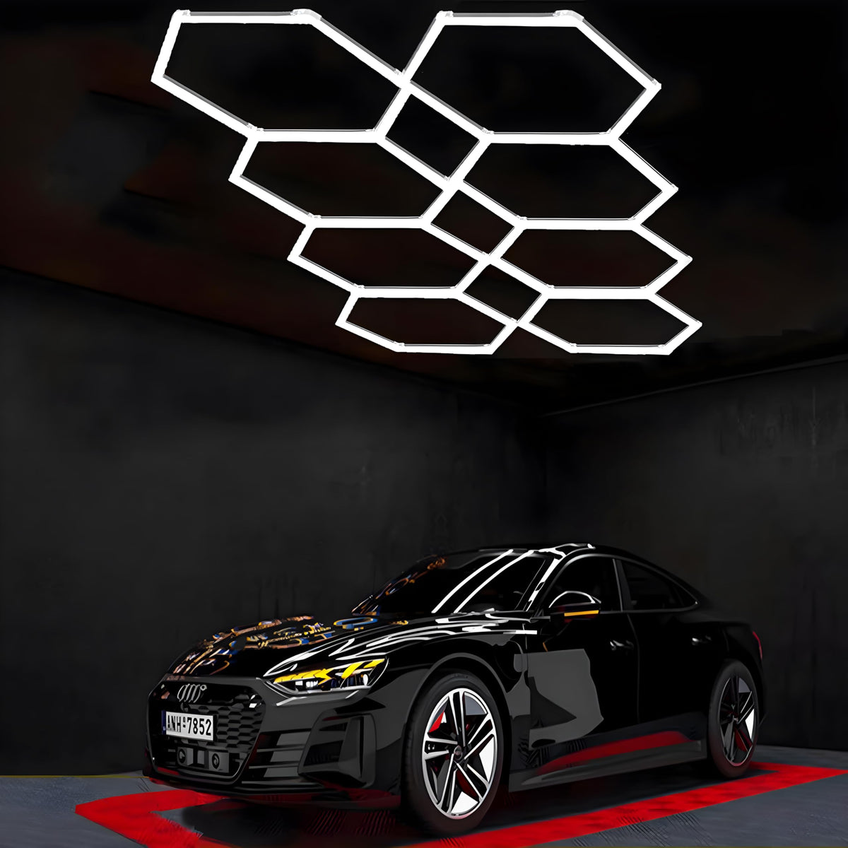 Q: How does the design of this garage light enhance its functionality?A: The unique hexagon and rectangle frame design of the garage light not only adds aesthetic appeal but also allows for better light dispersion, providing a superior lighting experience compared to traditional garage lights.