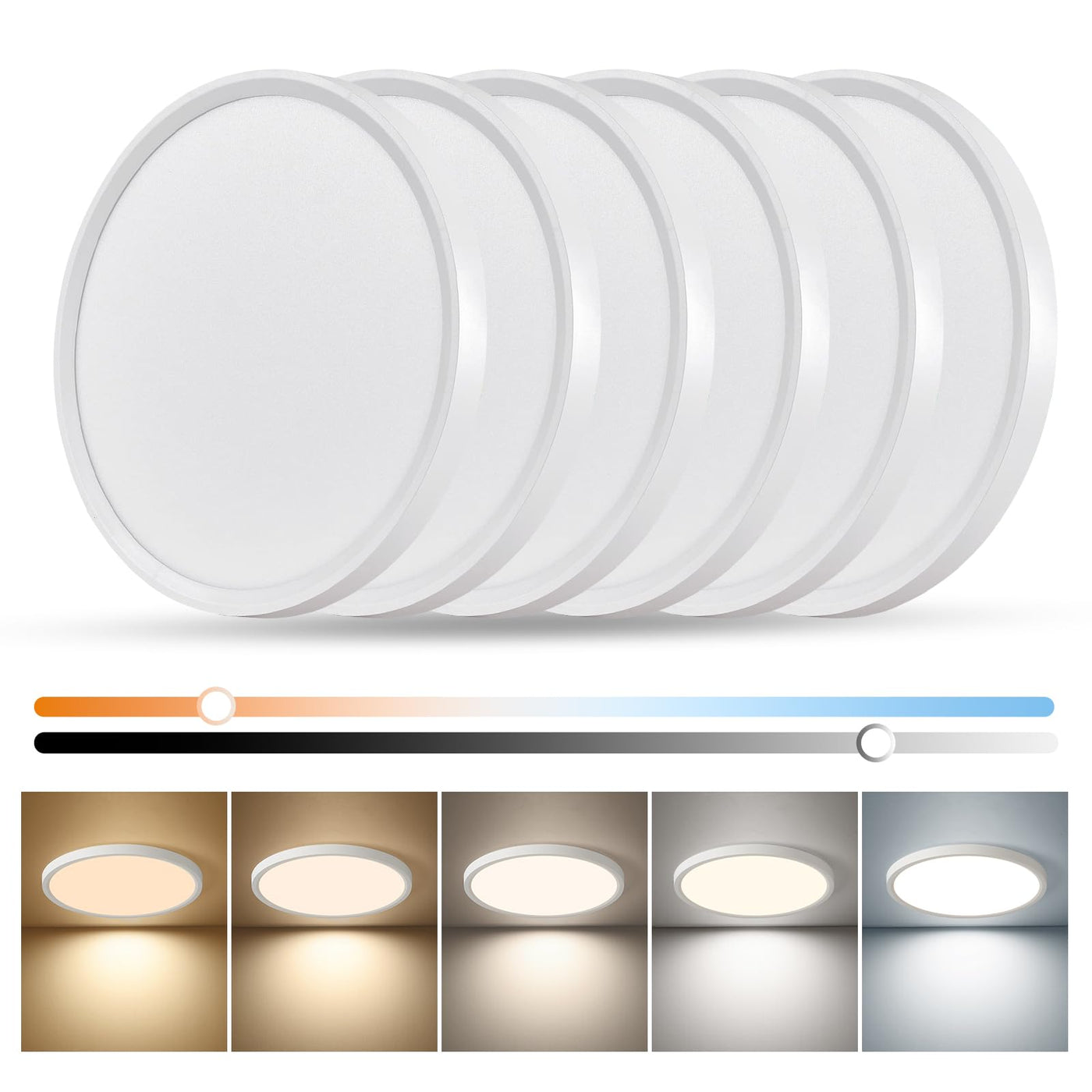 Q: How many color temperatures does this ceiling light offer?A: This ceiling light offers five color temperature options: two thousand seven hundred Kelvin, three thousand Kelvin, four thousand Kelvin, five thousand Kelvin, and six thousand Kelvin, allowing for customizable lighting environments.