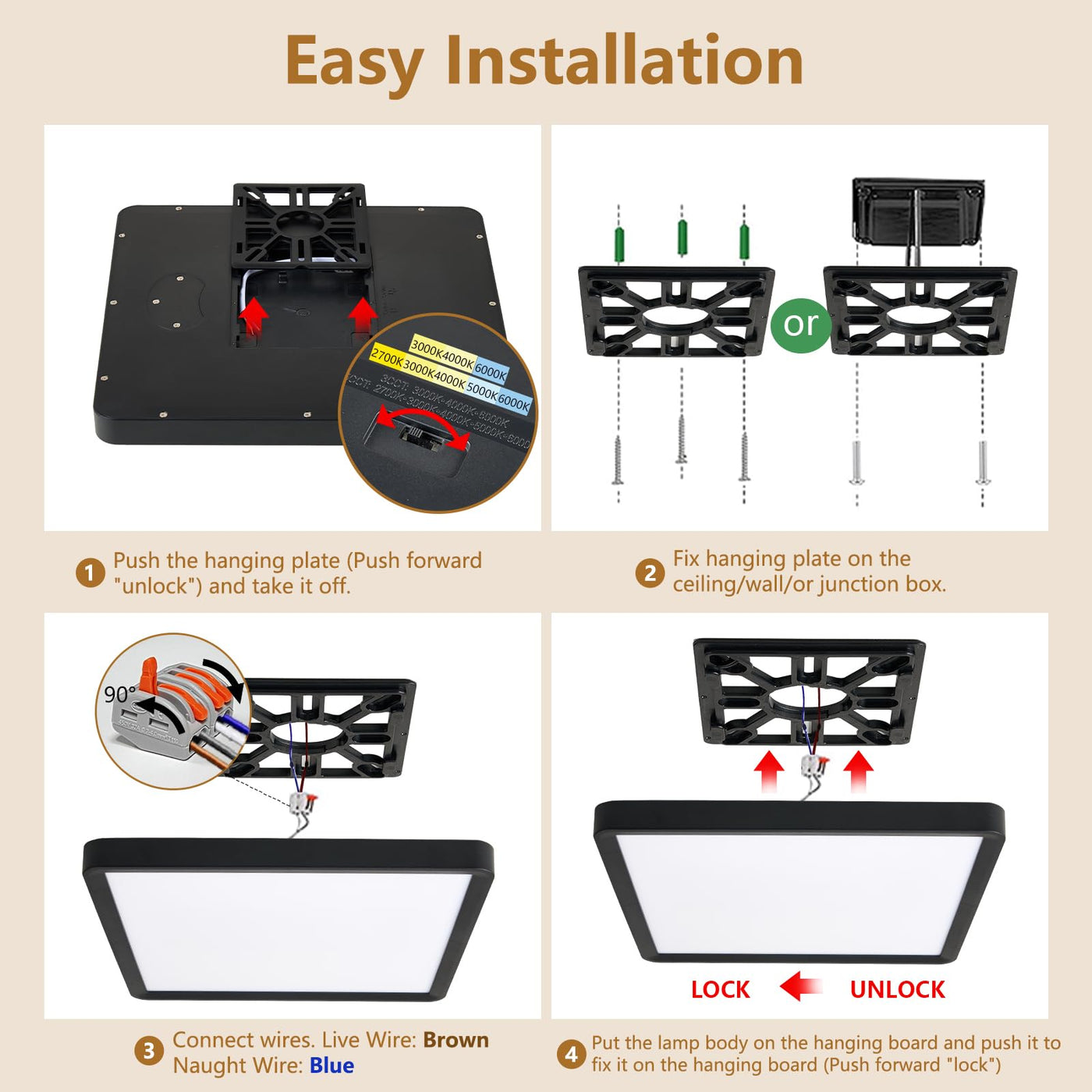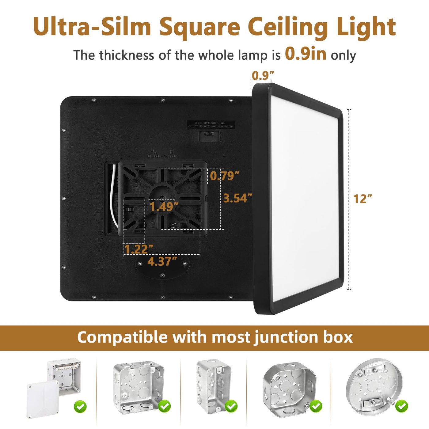 6Pk 12 Inch 30W 3000Lm 3000K/4000K/6000K Cct Selectable Square Led Ceiling Light The Height Of This Square Led Flush Mount Ceiling Light Is Only 0.9 Inch (2.3 Cm) Thin & Slim & Close To Flush Mount Make This Ceiling Light Ideal For Low Profile Space. You Can Set Your Favorite Color Directly On The Light Fixture Before Installation. Dl : 6000K Daylight Nw: 4000K Neutral White Ww: 3000K Warm White