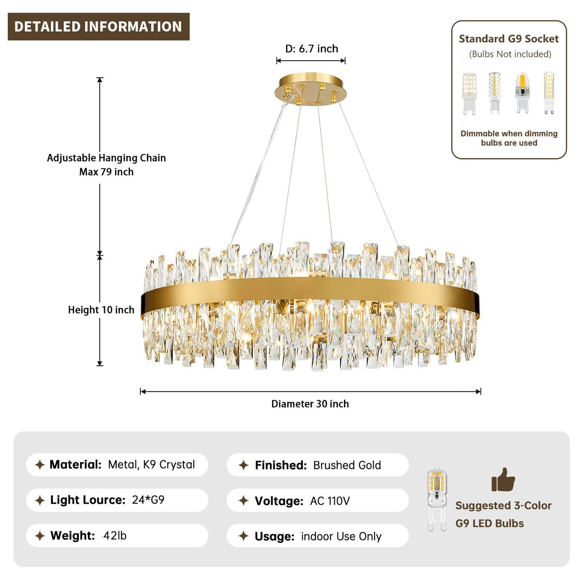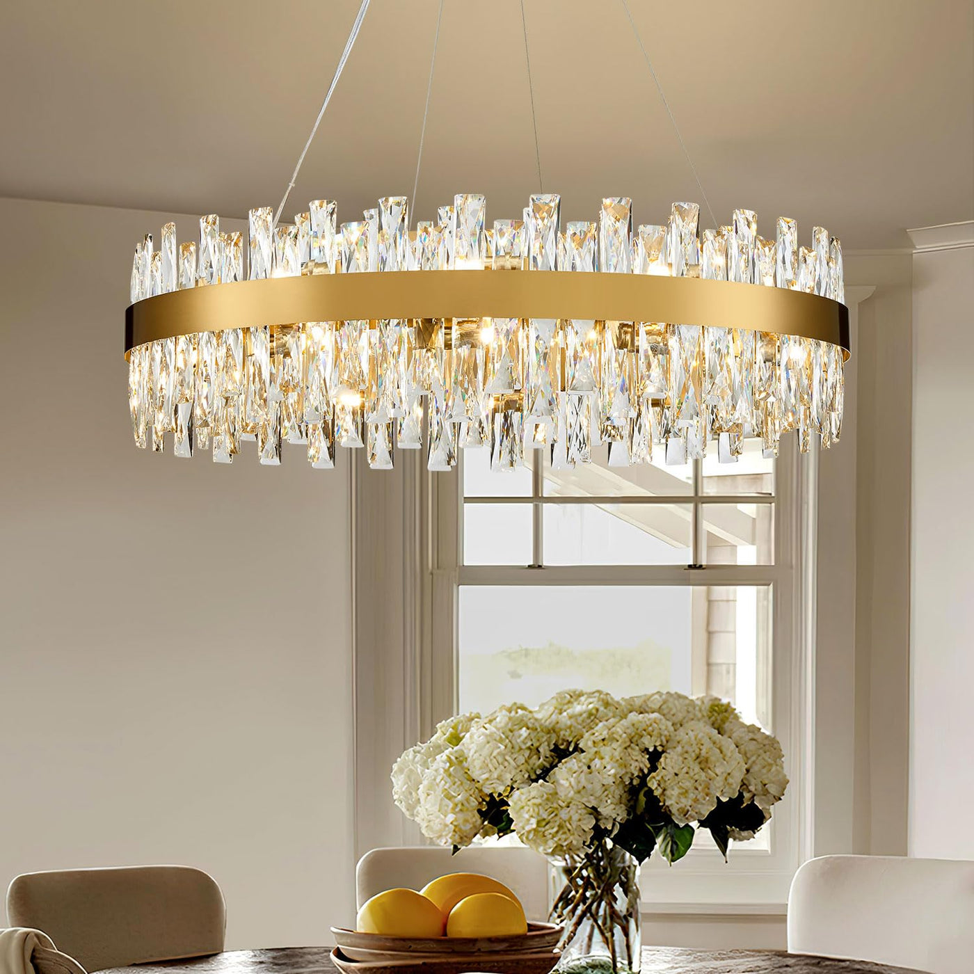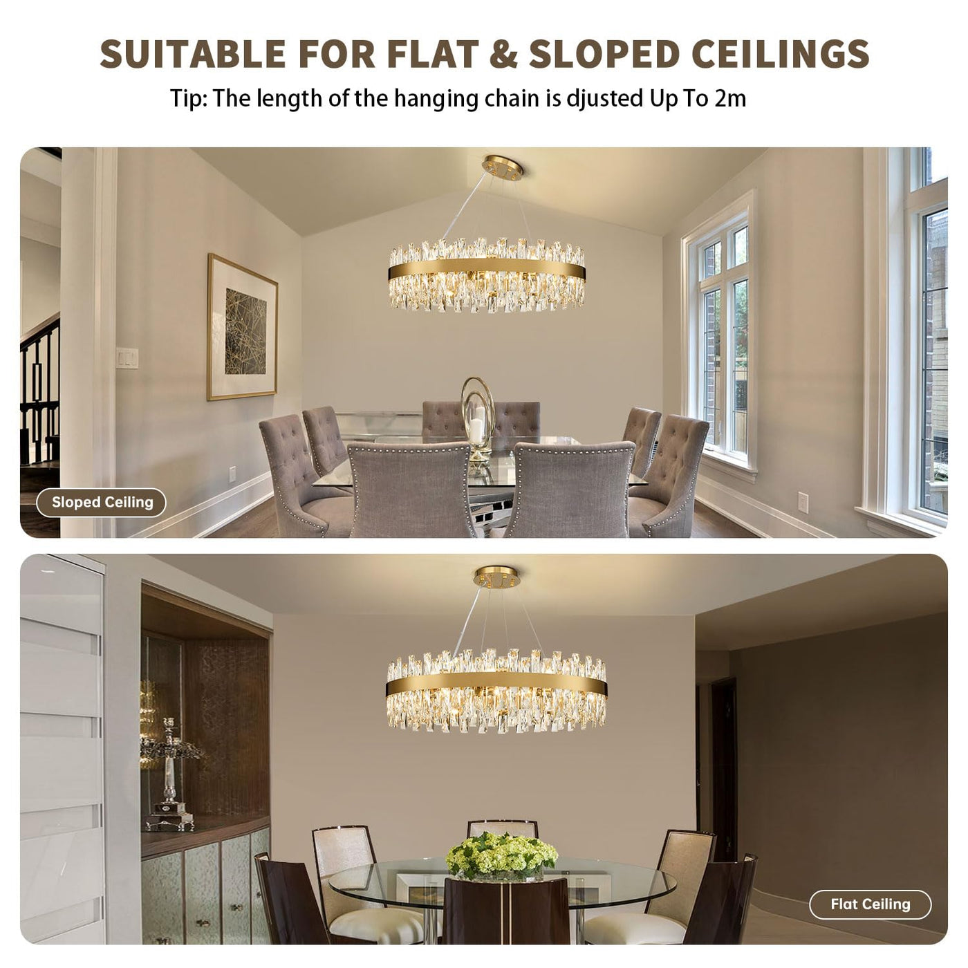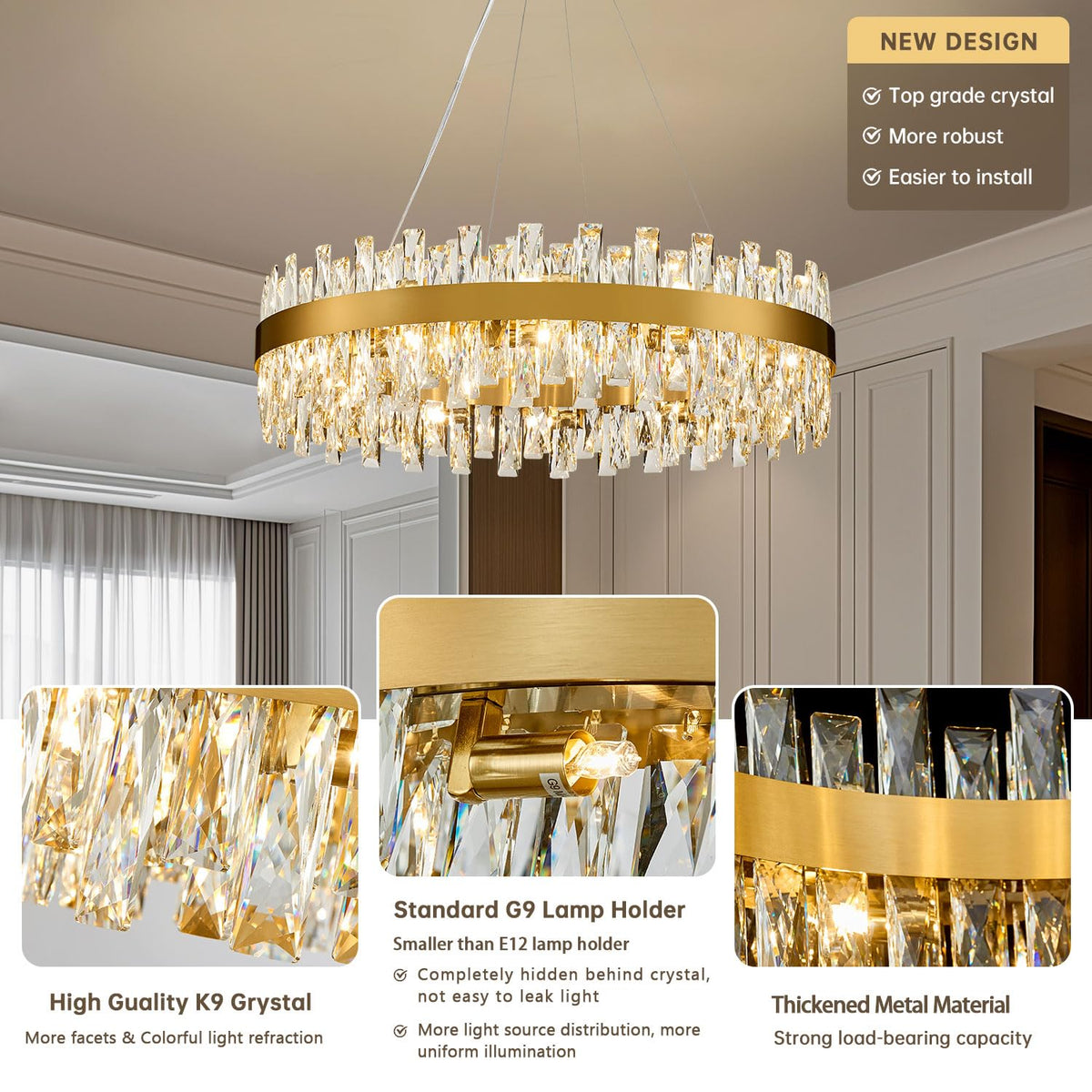Tmafon Modern Brass Gold Crystal Chandelier Lights, Round K9 Crystal Raindrop Chandelier, Pendant Ceiling Light Fixtures For Din