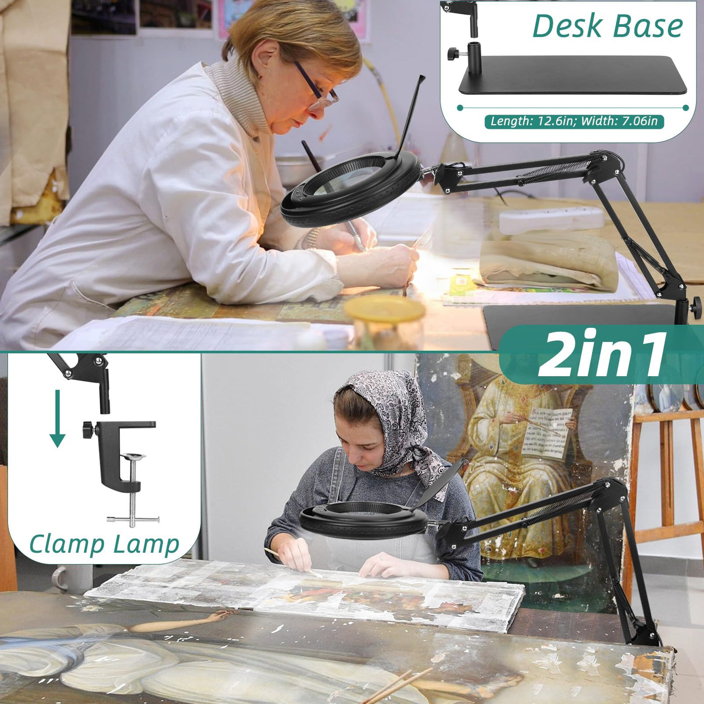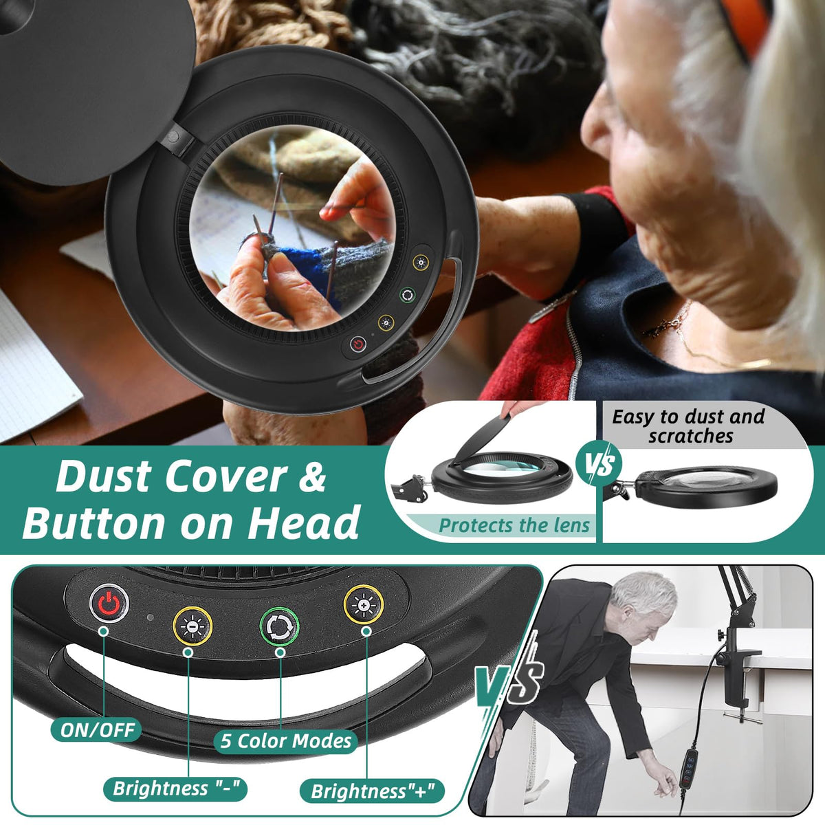 Clear 10X Glass Magnifier With Dust Cover This 10X Magnifying Glass Offers A Distortion-Free View, Perfect For Close-Up Work Like Numismatic Studies, Paint By Number, Or Aesthetic Tasks Such As Makeup Or Pedicures. The Built-In Dust Cover Protects The Lens, Ensuring That It Stays Clean And Sharp, Allowing For Precise Focus Without Interruptions From Dirt Or Debris. 5 Color Temperatures &Amp; 10 Brightness Levels With 5 Adjustable Color Temperatures And 10 Brightness Levels, This Magnifier Adapts To Any Lighting Condition. Whether You'Re Working On Detailed Projects, Like Stamp Collecting, Or At A Bench Doing Crafters' Work, You Can Find The Perfect Light To Reduce Eye Strain And Increase Visibility. 2-In-1 Clamp And Square Base: Versatile Mounting Options This Magnifier Offers Both A C-Clamp And A Square Base For Versatile Installation. The C-Clamp Can Attach To Surfaces Up To 2.1 Inches Thick And Holds The Arm Securely In Place At Most Angles, Ensuring Stability During Use. The Large 12.6-Inch By 7.08-Inch Square Base Has Been Extended To Balance The Weight Of The Lamp Head. For Extreme Angles, Simply Add A Weight To The Base For Added Stability, Allowing For Flexible Positioning On Any Workstation Or Bench. Convenient Head-Mounted Light Switch The Easy-To-Reach Switch Located On The Lamp Head Allows For Quick Lighting Adjustments With Just A Simple Touch. No Need To Interrupt Your Work-Whether You'Re Crafting Or Assisting An Older Family Member, This Feature Ensures Seamless Control Over The Lighting Settings. There Is Also A Handle Design On The Lamp Head To Make It Easier To Move The Lamp Head. The Perfect Gift For Family And Friends This Magnifier Is An Ideal Gift For Older Adults, Including Those With Macular Degeneration Or Vision Challenges. It'S Perfect For Hobbies Like Cross-Stitching, Stamp Collecting, Or Even Cricket-Related Tasks. It Adds A Layer Of Convenience And Clarity, Helping Your Loved Ones Continue To Enjoy Their Favorite Activities With Ease And Comfort. Specifications: Usb Cable Length: 1.5 Metres Material: Real Glass, Metal Color Mode: 5 Color Modes Clamp Opening: 2.1 Inches Mirror: 4'' Zoom Real Glass Package Includes: 1 * Usb Magnifying Light With Swivel Arm 1 * Clamp 1 * Rectangle Base1 * Adapter 1 * User Manual