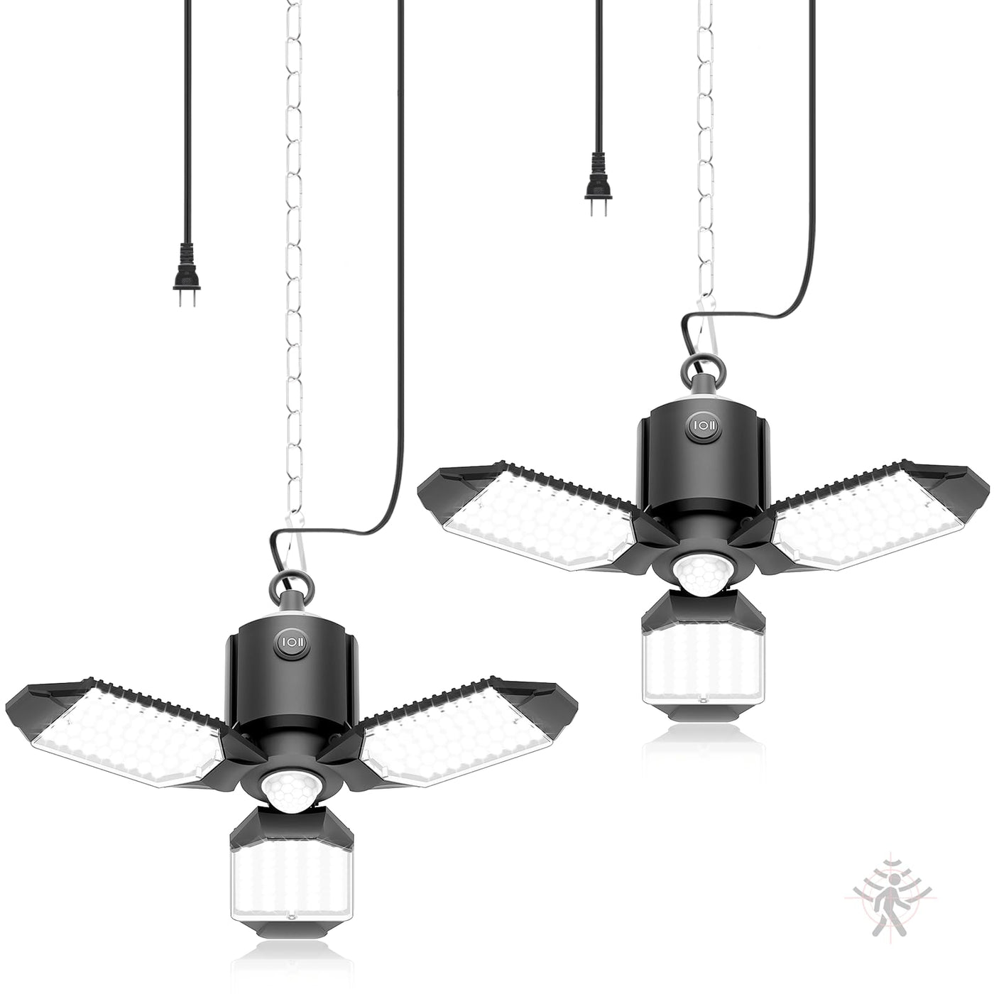 Toberich 2 Pack Plug In Motion Sensor Garage Light - 8000Lm Shop Light With 3 Modes, 3 Deformable Led Panels, 6500K Indoor Motio