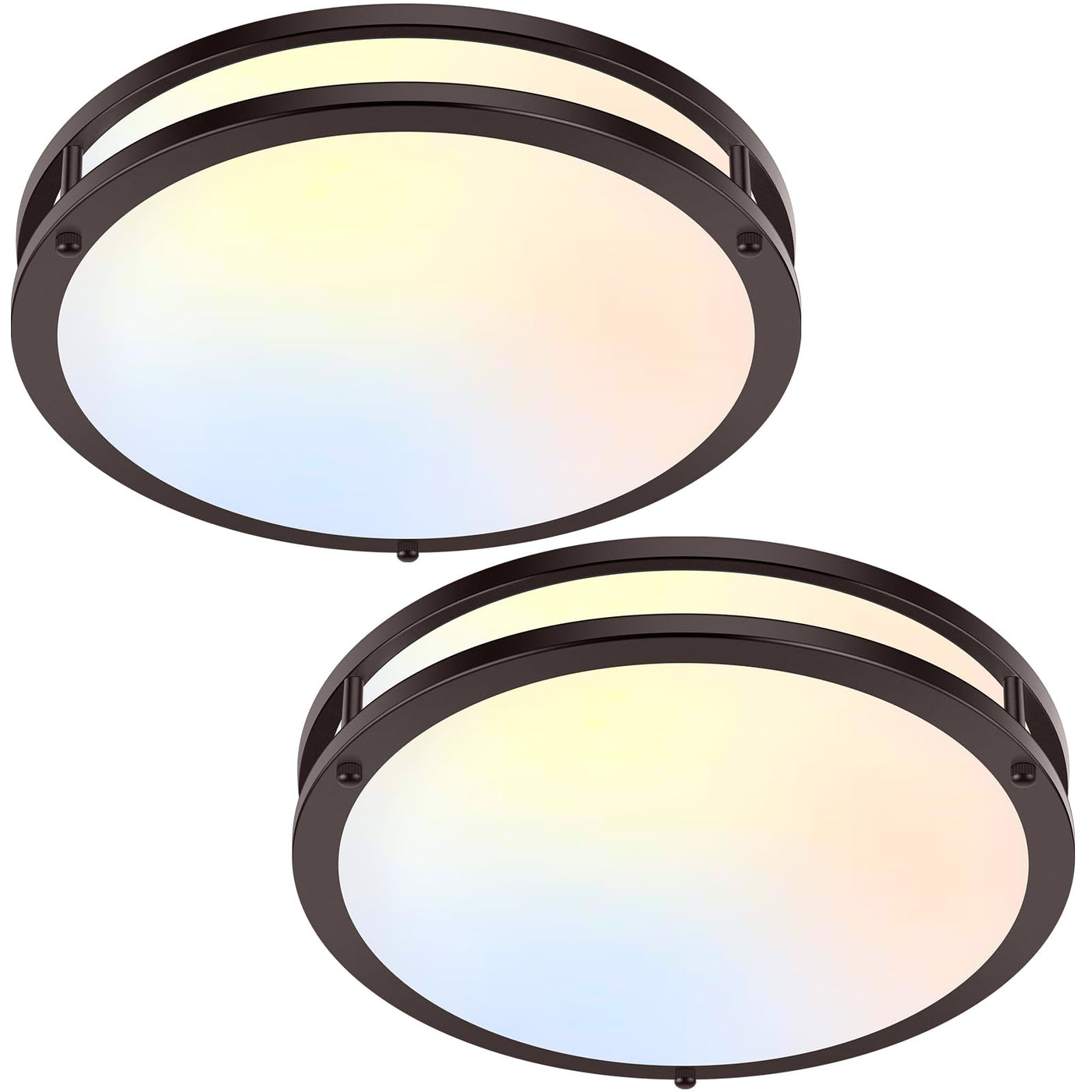 TOBUSA 2-Pack LED Ceiling Lights, 12in Flush Mount, 36W, Dimmable, Oil-Rubbed Bronze, 5CCT, Model 63630010-