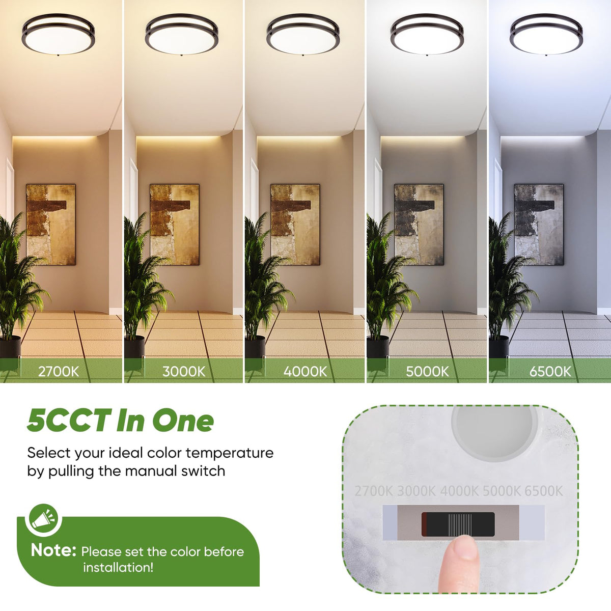 5CCT Adjustable: Choose from five color temperatures ranging from 2700K (warm white) to 6500K (daylight) using an easy-operated switch, allowing you to customize your lighting to suit your mood or activity.