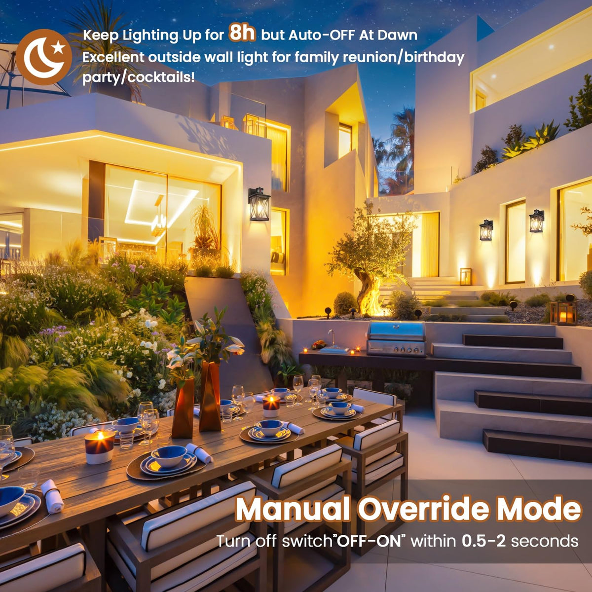 Advanced Motion Detection: Equipped with upgraded motion and photocell sensors, these lanterns automatically adjust brightness based on surrounding light conditions—dimming at dusk and activating at full brightness upon motion detection.