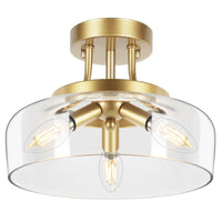 Tobusa 3-Light Gold Semi Flush Mount Ceiling Light With Glass Shade For Living Room And Kitchen