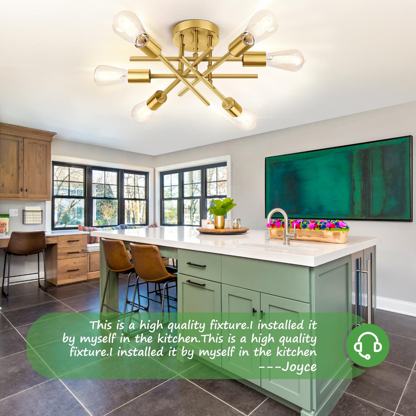 Tobusa 6-Light Gold Semi Flush Mount Ceiling Light Fixture, Modern Industrial Brushed Golden Sputnik Ceiling Light, E26 Close To