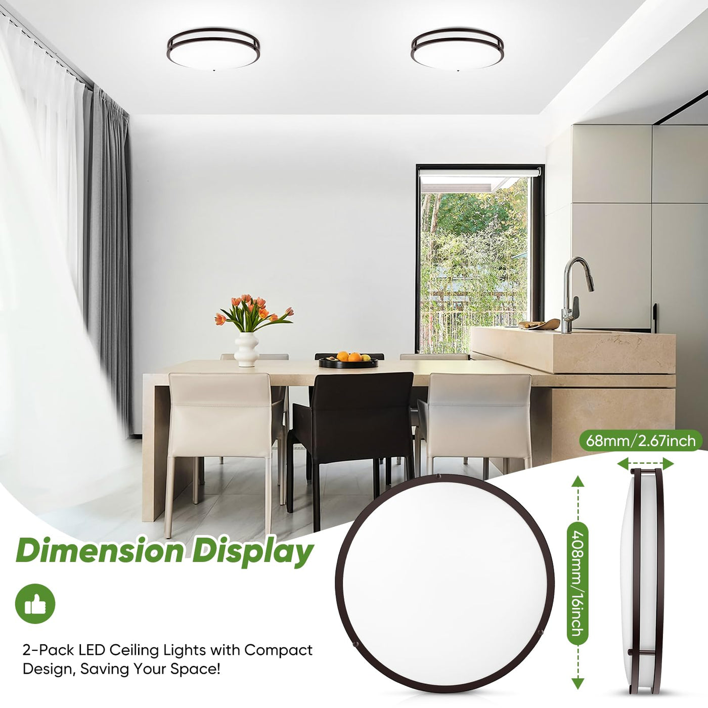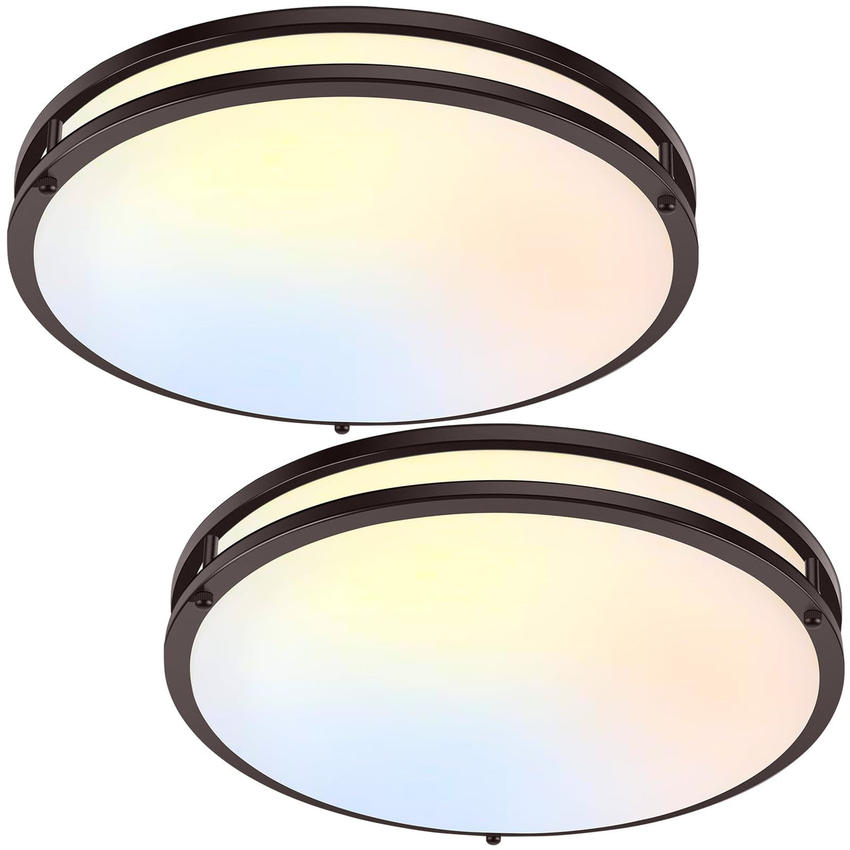TOBUSA LED Flush Mount Ceiling Lights, 50W, Dimmable, 16in, Oil-Rubbed Bronze, 5600lm, 5CCT, 2-Pack,