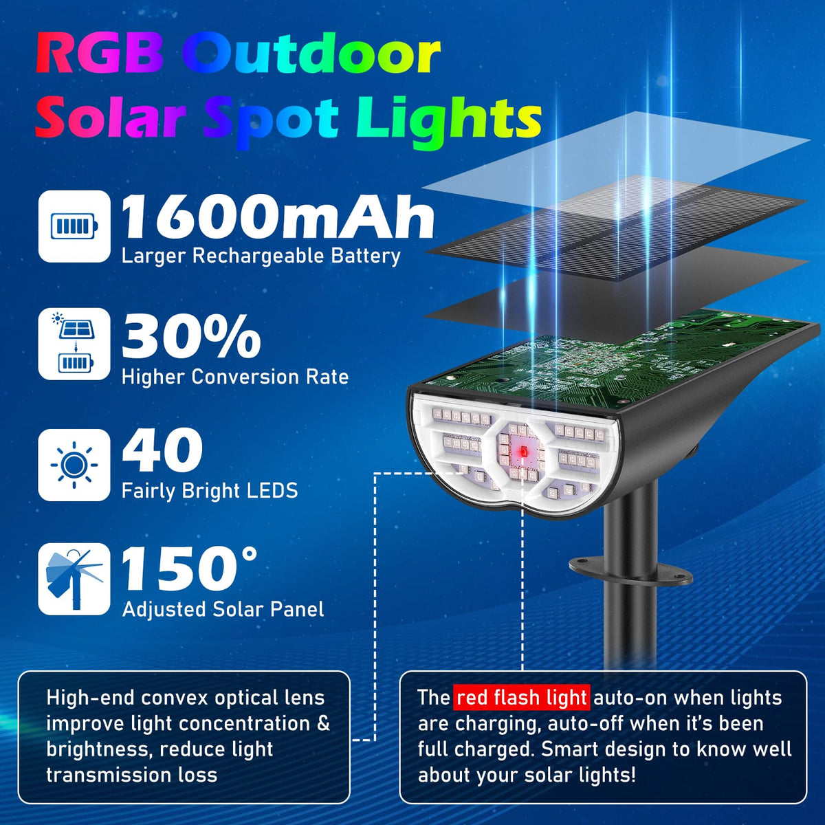 Tobusa Solar Spot Lights Outdoor Waterproof, Rgb Solar Color Changing Lights With 9 Lighting Modes, Multi-Color Solar Powered La