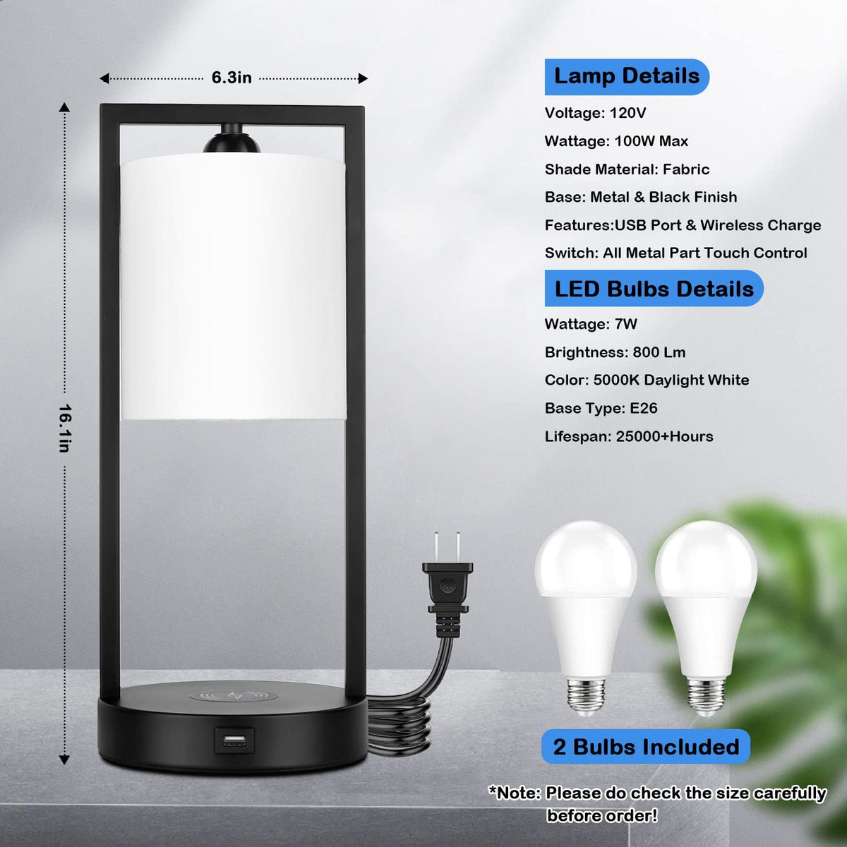 Bring Your Smart Wireless Charging Lamps Home Now!How This Lamp Bring You Smart Life?Touch Control: Used Latest Sensor Tech, You Can Control This Lamp By Touching Any Metal Parts, Easy Choose Different Brightness For Your Usage.Wireless Charging: Not Just A Lamp, But Also A Charging Station! The Wireless Charging Table Lamp Will Surprise Your Family By Such A Practical And Innovative Function.&Nbsp;Put Your Smart Phone (Need To Support Wireless Charging) On The Base Center, The Table Lamps Will Charge Your Device Weather The Lamps Are On/Off. Get Your Phone Full Of Power Every Morning!Elegant Look:&Nbsp;With White Round Lampshade And Black Base, The Beside Lamps Are Versatile For Any Decor Schemes Like Modern, Industrial, Minimalist, Perfect To Create A Relaxing &Amp; Chick Touch To Your Bedroom, Living Room, Guest Room, Cafe Table.Heavy Matte Black Base:&Nbsp;Tobusa Wireless Charging Table Lamps Adopt With Anti-Rust Finish To Assure Years Of Use, Exquisite Touch. With Non-Slip Plate Design And Weighted Metal Structure, The Lamp Set Will Be Stable On Your Table Day And Night.Led Bulbs Included:&Nbsp;No Need To Purchase Additional Bulbs In Local Shops! We Always Want To Same Your Time And Bucks, So The Package Itself Includes 2 Led Bulbs, 90% Energy Saving, Perfect For Your Green Life!