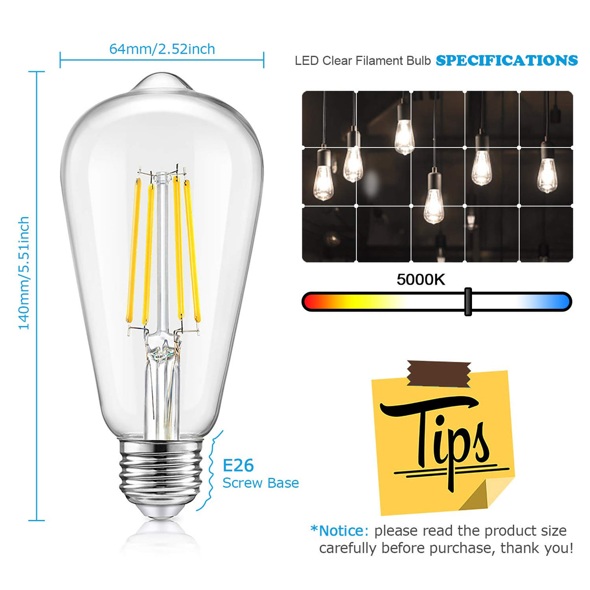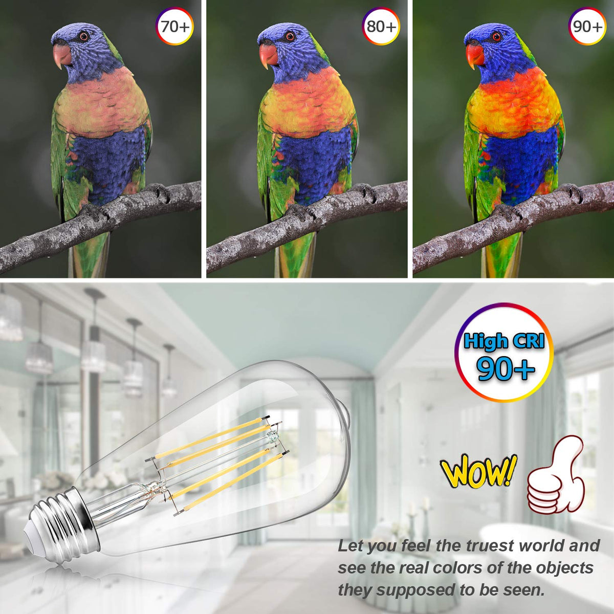 - **Super Energy Saving**: Say goodbye to high electricity bills! The 8W dimmable ST64 light bulb boasts an impressive lifespan of approximately 25,000 hours (equivalent to 22 years based on 3 hours of daily use), while consuming over 90% less energy than traditional incandescent bulbs. It's the perfect solution to combine style with energy efficiency.