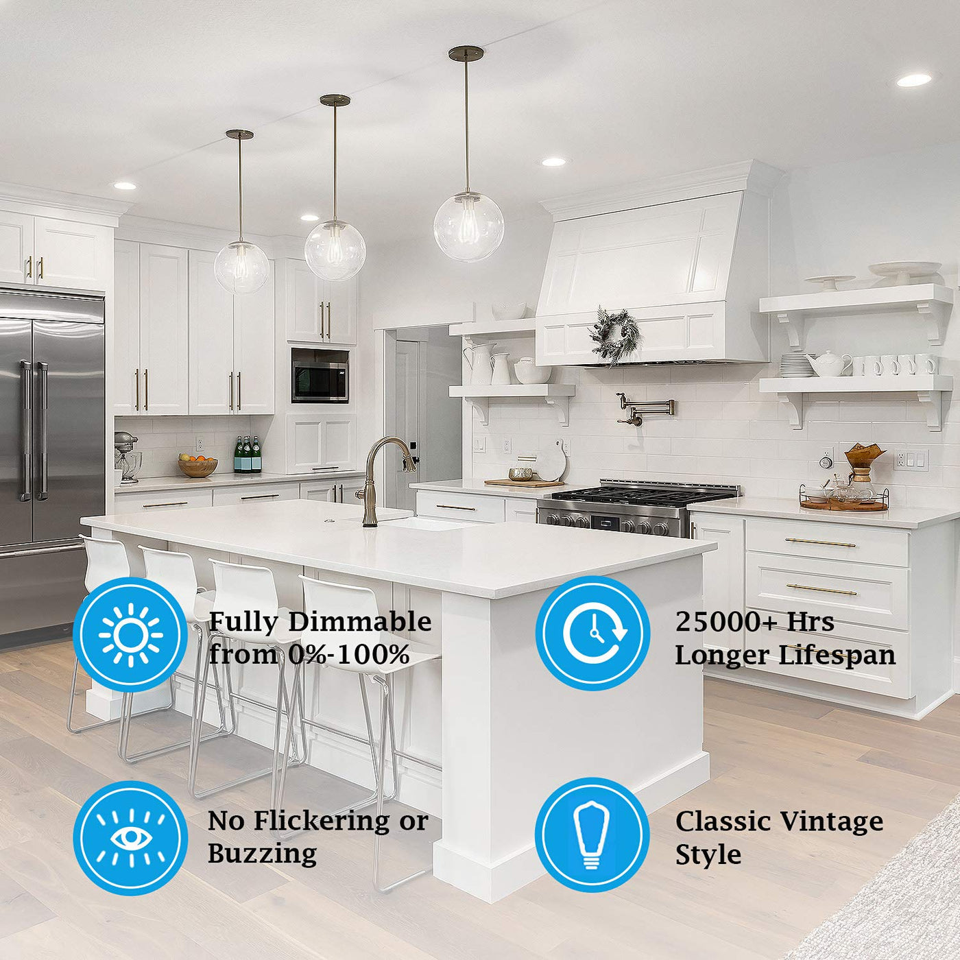 - **Smoothly Dimmable Performance**: Utilizing advanced dimming technology, these vintage 100-watt equivalent amber LED bulbs seamlessly integrate with 90% of dimmers available on the market, including Lutron and Leviton. Enjoy full control over your lighting ambiance, adjusting brightness from 0% to 100% without flicker or strobe.