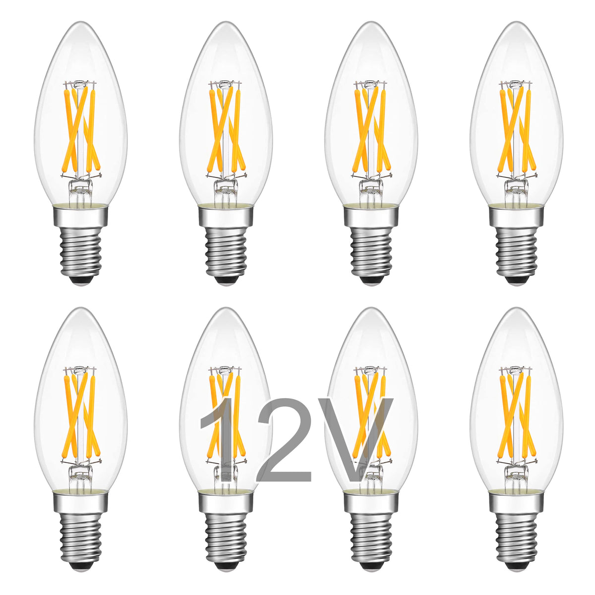 Tokcon 12 Volt Low Voltage Candelabra Led Light Bulbs - Soft Warm White 2700K 4W(Only For 12V Dc/Ac) - E12 Small Base - 40W Equi