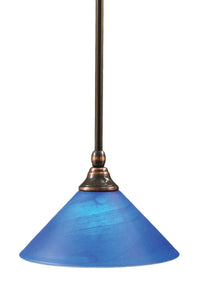The Toltech Lighting 23-BC-435 Stem Mini-Pendant Light Black Copper Finish with Blue Italian Glass, 10-Inch is a ceiling light that features a 10-Inch blue Italian glass shade. comes with 1-6-Inch, 2-12-Inch and 1-18-Inch stem sections. Product dimensions (in Inch): 6.5 H by 10 W. Fixture requires 1 100-Watt medium base incandescent bulb, not included. Product safety tested and approved by the UL/CUL in the US and Canada. Assembly required. This model is also available in the following finishes: Brushed Nickel, Bronze.