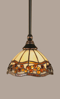 23-BC-9975 Stem Mini Pendant With Hang Straight Swivel Shown In Black Copper Finish With 7" Roman Jewel Art Glass. Rated for: Dry location. Light Bulb Data: 1 Medium 100 watt. Bulb included: No.