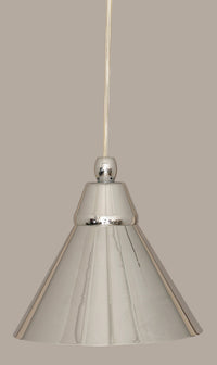 22-CH-421 Cord Mini Pendant Shown In Chrome Finish With 7" Chrome Cone Metal Shade. Rated for: Dry location. Light Bulb Data: 1 Medium 100 watt. Bulb included: No.