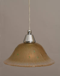 22-CH-730 Cord Mini Pendant Shown In Chrome Finish With 10" Amber Crystal Glass. Rated for: Dry location. Light Bulb Data: 1 Medium 100 watt. Bulb included: No.