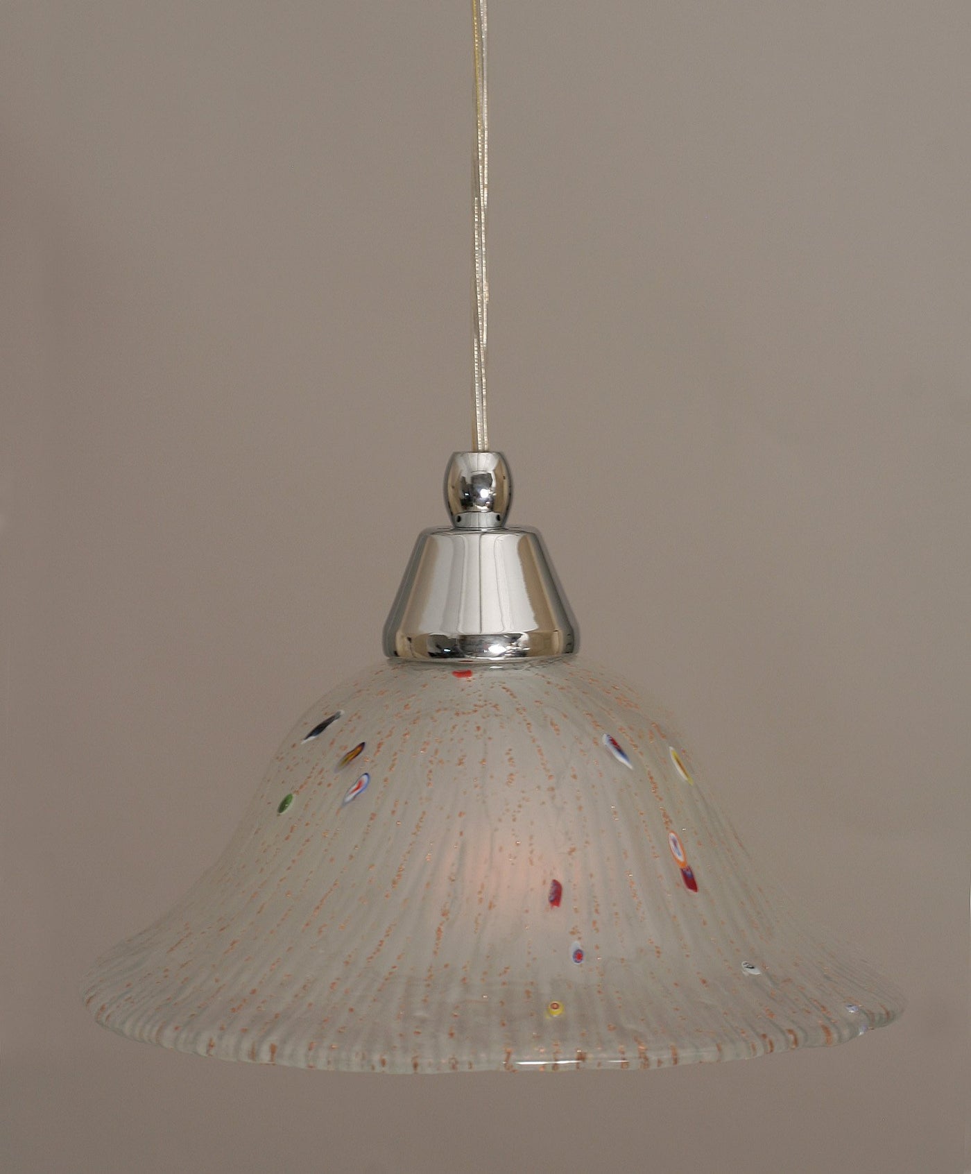 22-CH-731 Cord Mini Pendant Shown In Chrome Finish With 10" Frosted Crystal Glass. Rated for: Dry location. Light Bulb Data: 1 Medium 100 watt. Bulb included: No.