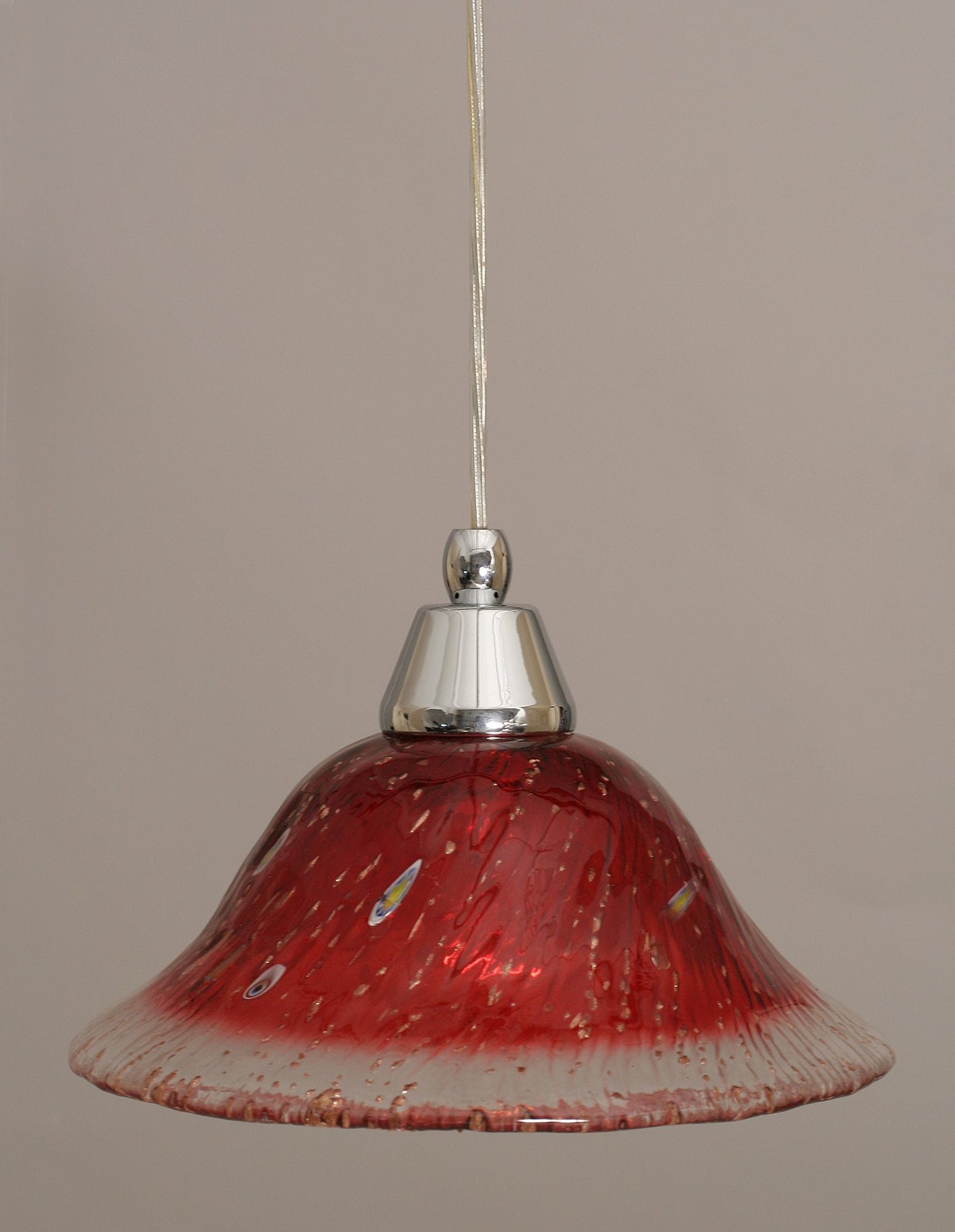 22-CH-736 Cord Mini Pendant Shown In Chrome Finish With 10" Raspberry Crystal Glass. Rated for: Dry location. Light Bulb Data: 1 Medium 100 watt. Bulb included: No.