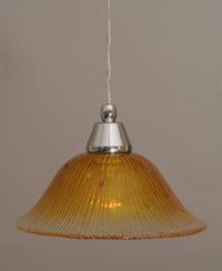 22-CH-773 Cord Mini Pendant Shown In Chrome Finish With 10" Gold Champagne Crystal Glass. Rated for: Dry location. Light Bulb Data: 1 Medium 100 watt. Bulb included: No.