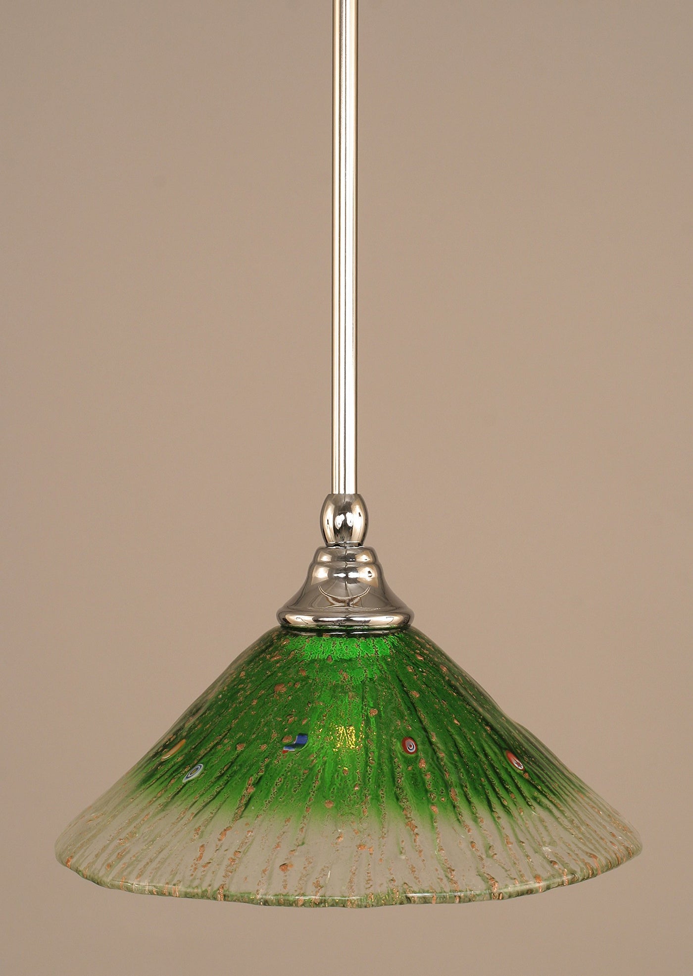 23-CH-437 Stem Mini Pendant With Hang Straight Swivel Shown In Chrome Finish With 10" Kiwi Green Crystal Glass . Rated for: Dry location. Light Bulb Data: 1 Medium 100 watt. Bulb included: No.