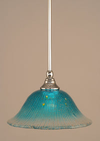 23-CH-438 Stem Mini Pendant With Hang Straight Swivel Shown In Chrome Finish With 10" Teal Crystal Glass . Rated for: Dry location. Light Bulb Data: 1 Medium 100 watt. Bulb included: No.