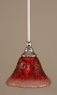 23-CH-756 Stem Mini Pendant With Hang Straight Swivel Shown In Chrome Finish With 7" Raspberry Crystal Glass . Rated for: Dry location. Light Bulb Data: 1 Medium 100 watt. Bulb included: No.