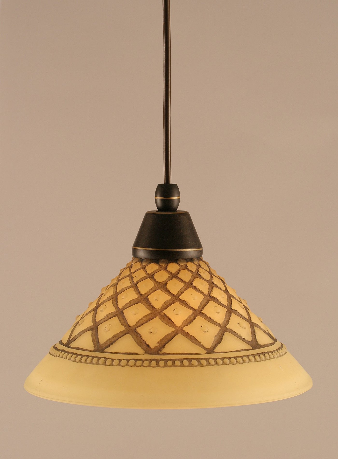 22-DG-7183 Cord Mini Pendant Shown In Dark Granite Finish With 10" Chocolate Icing Glass. Rated for: Dry location. Light Bulb Data: 1 Medium 100 watt. Bulb included: No.