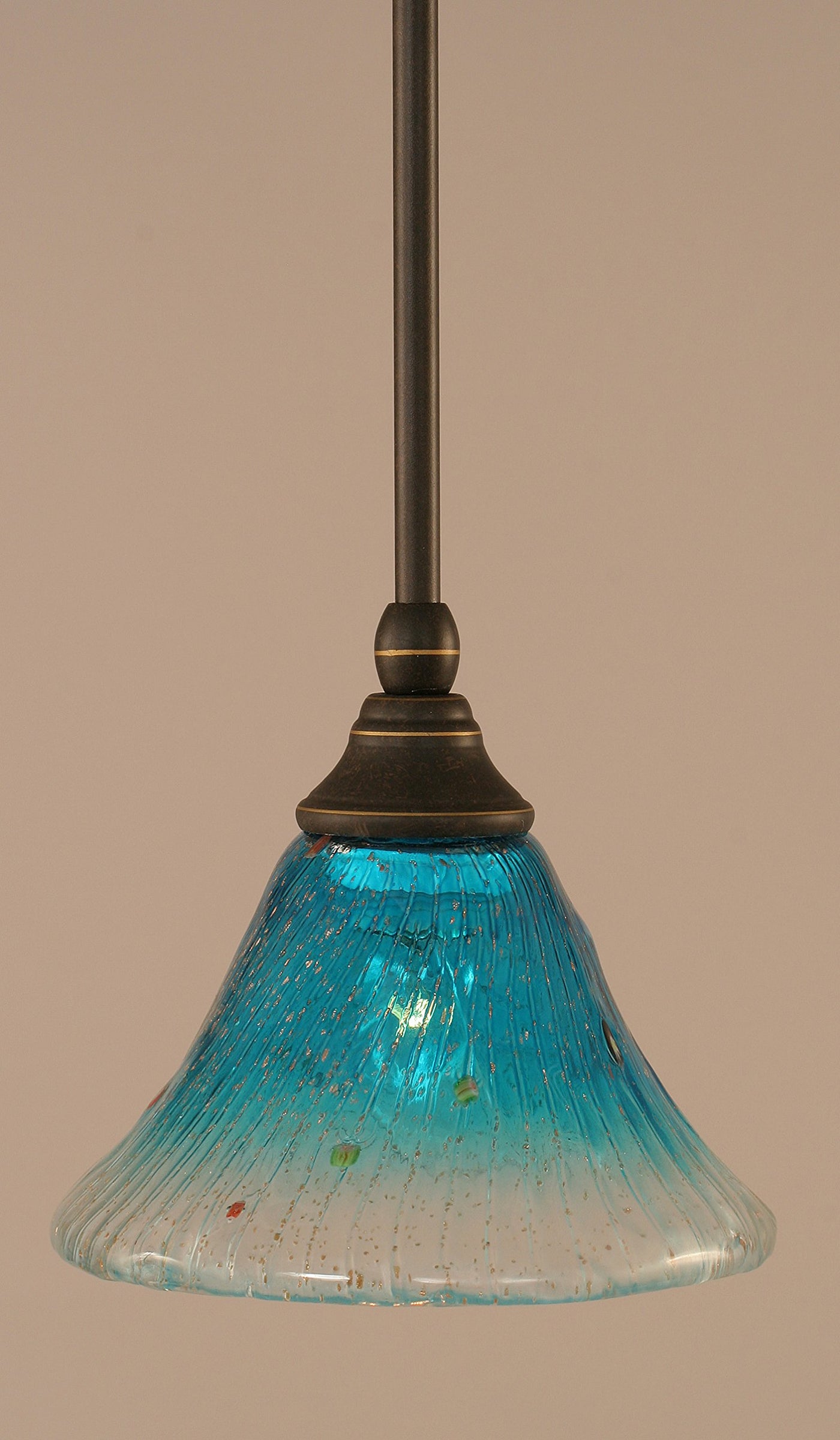 23-DG-458 Stem Mini Pendant With Hang Straight Swivel Shown In Dark Granite Finish With 7" Teal Crystal Glass. Rated for: Dry location. Light Bulb Data: 1 Medium 100 watt. Bulb included: No.
