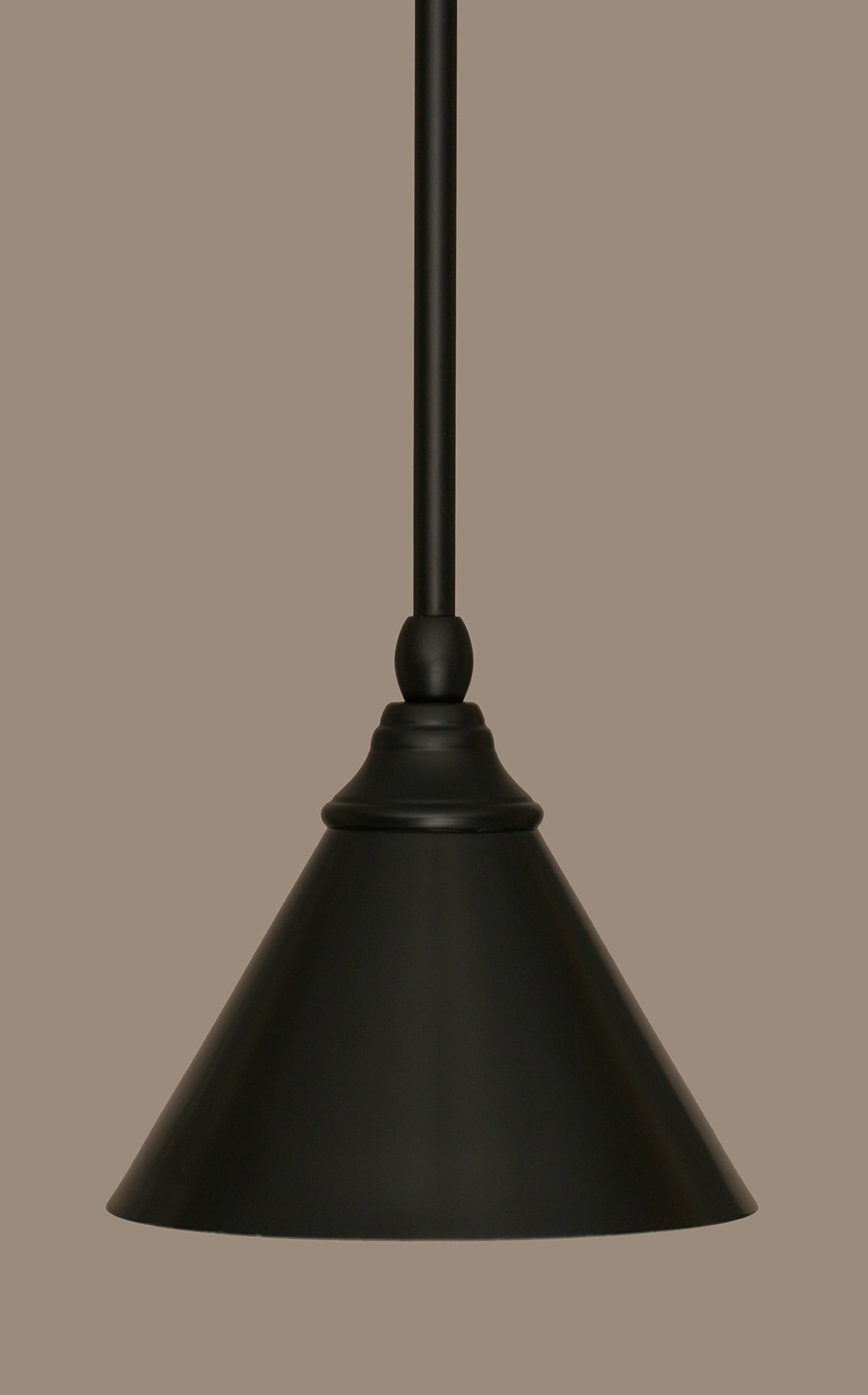 23-MB-421 Stem Mini Pendant With Hang Straight Swivel Shown In Matte Black Finish With 7" Matte Black Cone Metal Shade. Rated for: Dry location. Light Bulb Data: 1 Medium 100 watt. Bulb included: No.