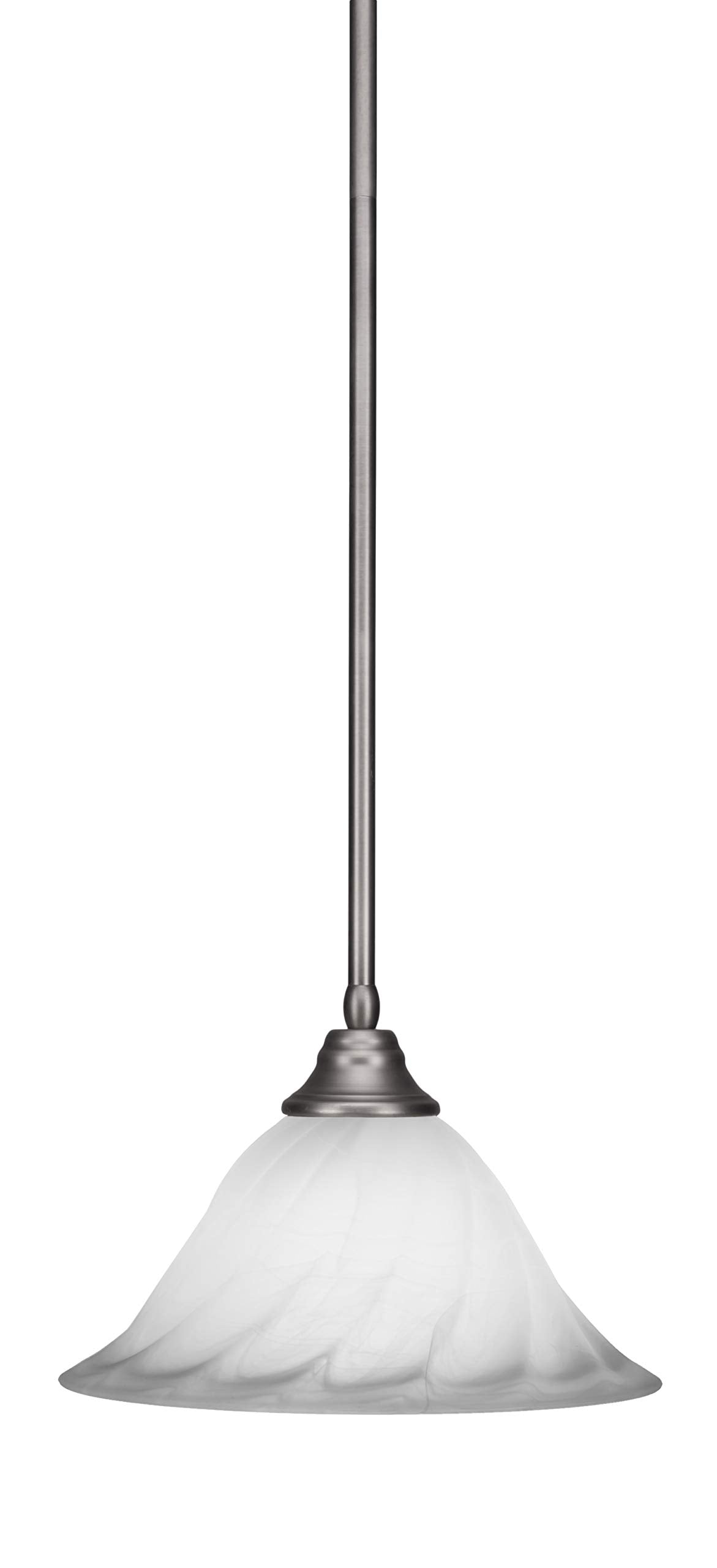 26-BN-5731 Stem Pendant With Hang Straight Swivel Shown In Brushed Nickel Finish With 14" White Alabaster Swirl Glass. Rated for: Dry location. Light Bulb Data: 1 Medium 150 watt. Bulb included: No.
