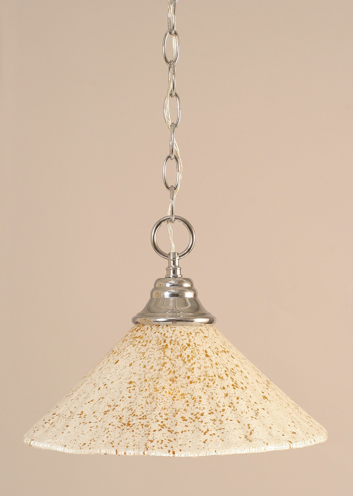 10-CH-702 Chain Hung Pendant Shown In Chrome Finish With 12" Gold Ice Glass. Rated for: Dry location. Light Bulb Data: 1 Medium 150 watt. Bulb included: No.