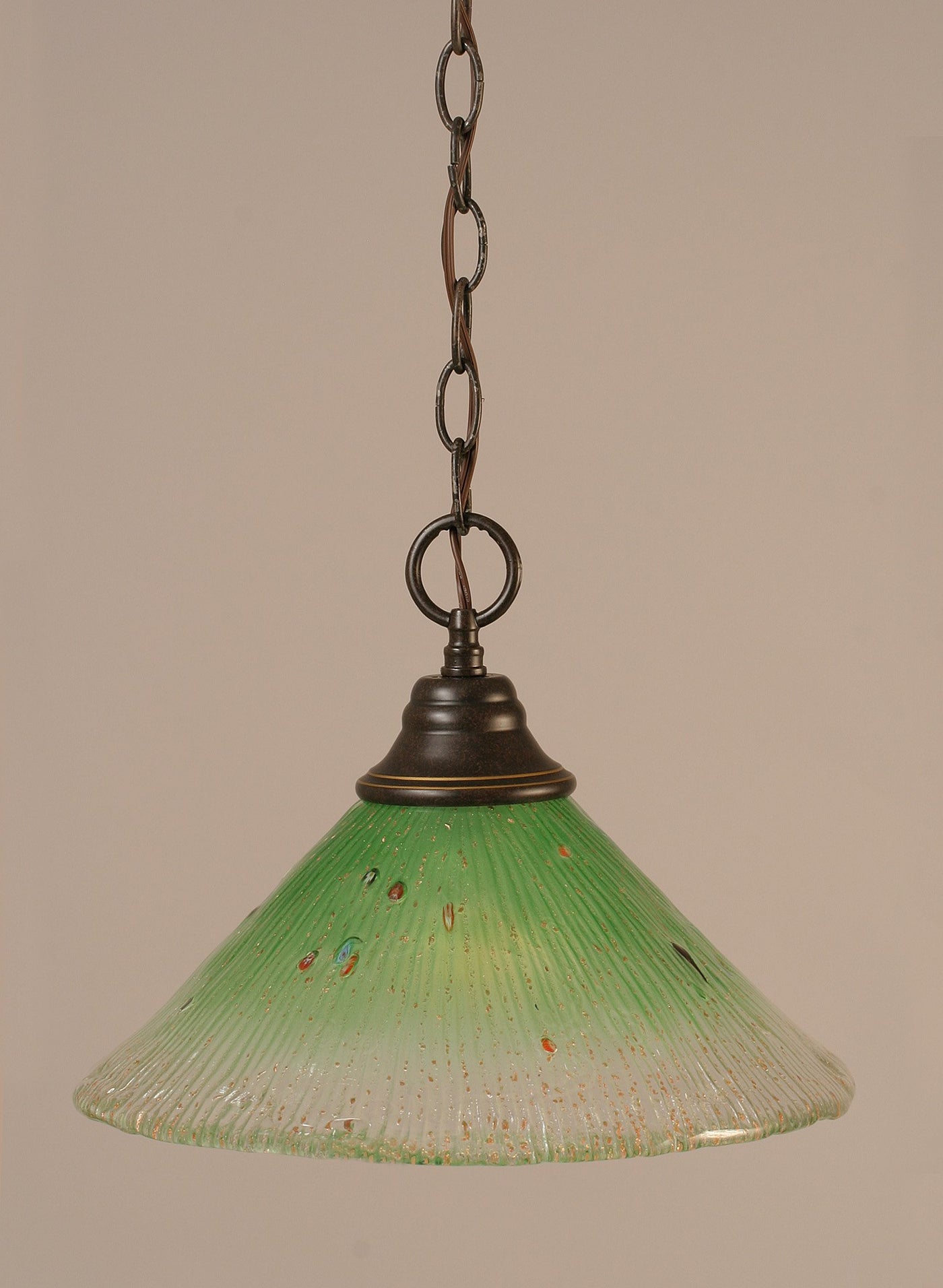 10-DG-447 Chain Hung Pendant Shown In Dark Granite Finish With 12" Kiwi Green Crystal Glass. Rated for: Dry location. Light Bulb Data: 1 Medium 150 watt. Bulb included: No.
