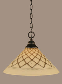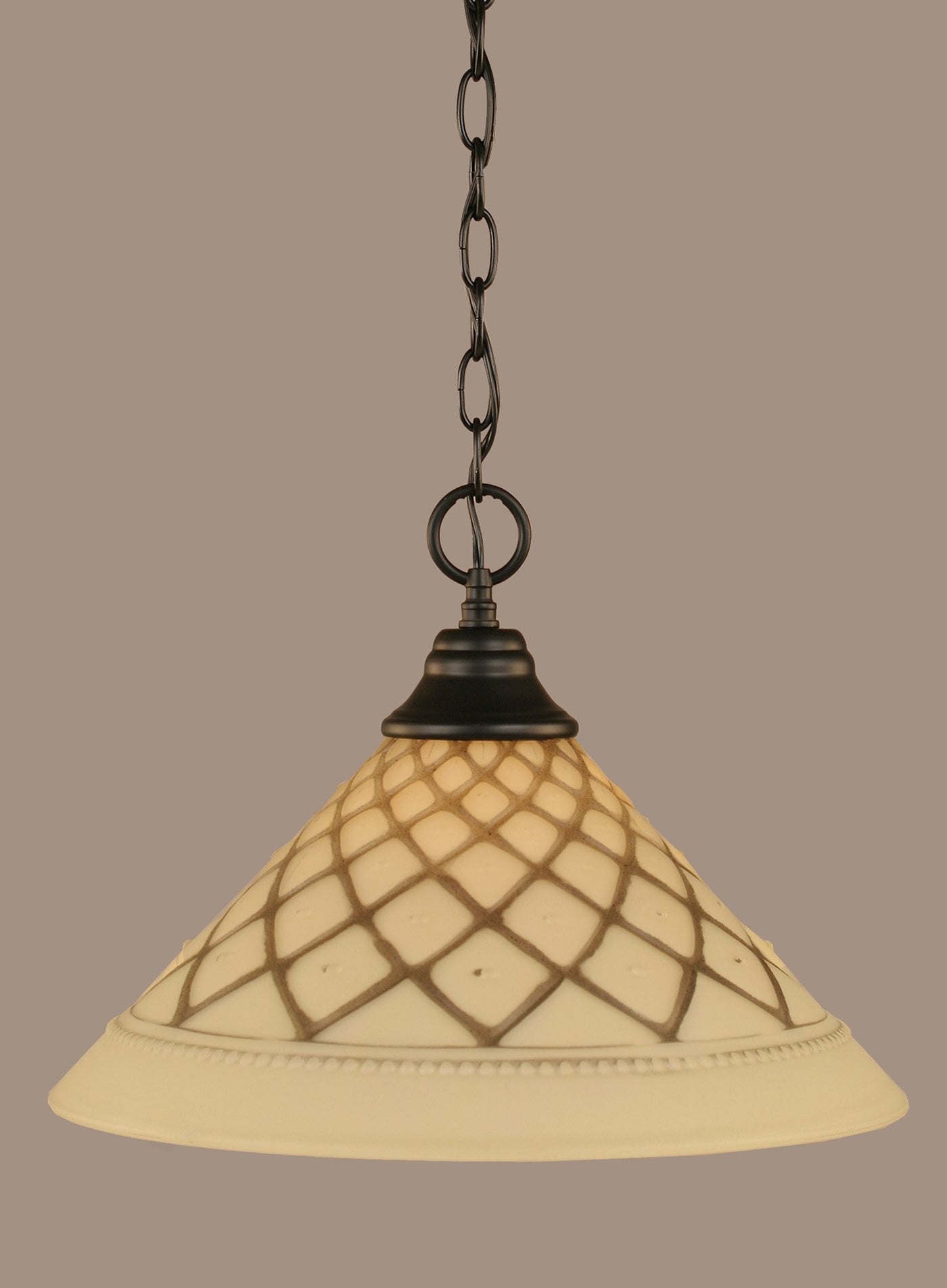 Toltec Lighting 10-MB-718 Chain Hung Pendant Shown In Matte Black Finish With 16" Chocolate Icing Glass. Rated for: Dry location. Light Bulb Data: 1 Medium 150 watt. Bulb included: No.