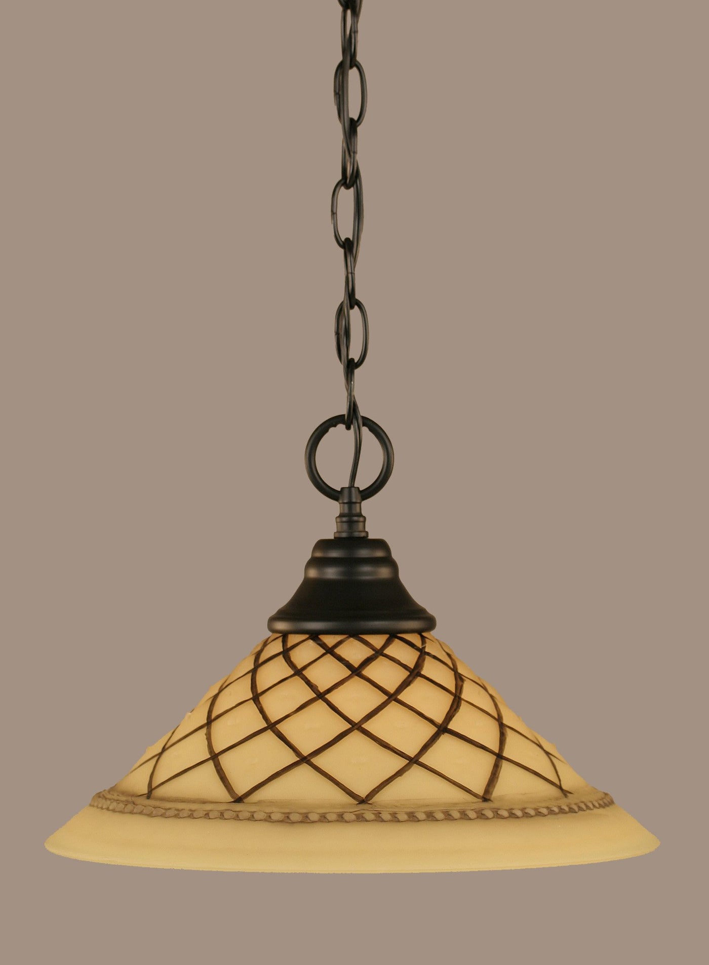 10-MB-7182 Chain Hung Pendant Shown In Matte Black Finish With 12" Chocolate Icing Glass. Rated for: Dry location. Light Bulb Data: 1 Medium 150 watt. Bulb included: No.