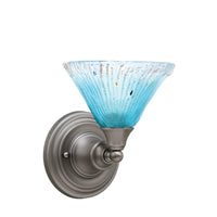 40-BN-458 Wall Sconce Shown In Brushed Nickel Finish With 7" Teal Crystal Glass. Rated for: Dry location. Light Bulb Data: 1 Medium 100 watt. Bulb included: No.