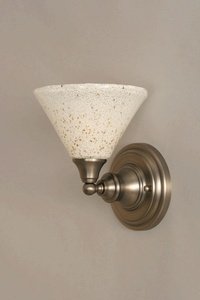 40-BN-7145 Wall Sconce Shown In Brushed Nickel Finish With 7" Gold Ice Glass. Rated for: Dry location. Light Bulb Data: 1 Medium 100 watt. Bulb included: No.