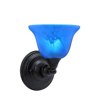 40-MB-4155 Wall Sconce Shown In Matte Black Finish With 7" Blue Italian Glass. Rated for: Dry location. Light Bulb Data: 1 Medium 100 watt. Bulb included: No.