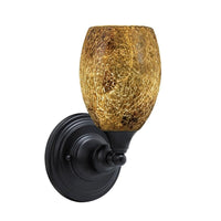 40-MB-4175 Wall Sconce Shown In Matte Black Finish With 5.5" Gold Fusion Glass. Rated for: Dry location. Light Bulb Data: 1 Medium 100 watt. Bulb included: No.