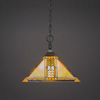 Toltec Lighting 12-Mb-986 Chain Hung Pendant With Square Fitter With 14" Santa Cruz Tiffany Glass, Matte Black Finish